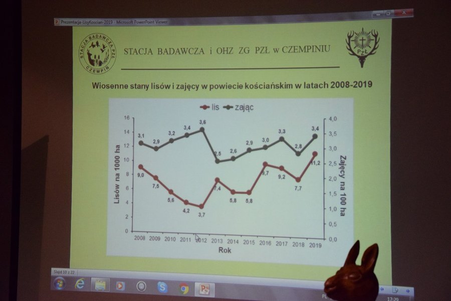 Wyniki realizacji 12 sezonu programu podsumował dr hab. Marek Panek, który omówił stan populacji zajęcy i lisów w całej Polsce i w powiecie. Omówił zmiany w diecie lisów na przestrzeni kilkudziesięciu lat i udział zajęcy w tej diecie. W porównaniu z ubiegłym rokiem – jak pokazały wyniki badań - wzrosła populacja zajęcy. Wzrosła także liczba pozyskanych w ramach programu lisów. Sytuacja zajęcy, w wyniku realizacji w powiecie programu jest stabilna.