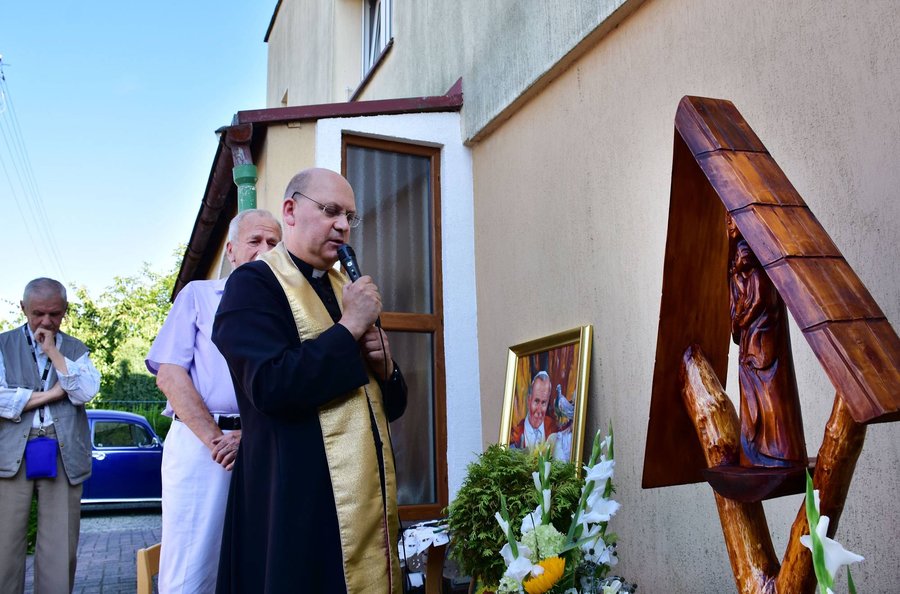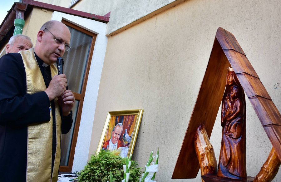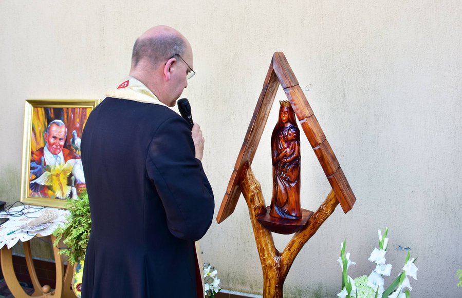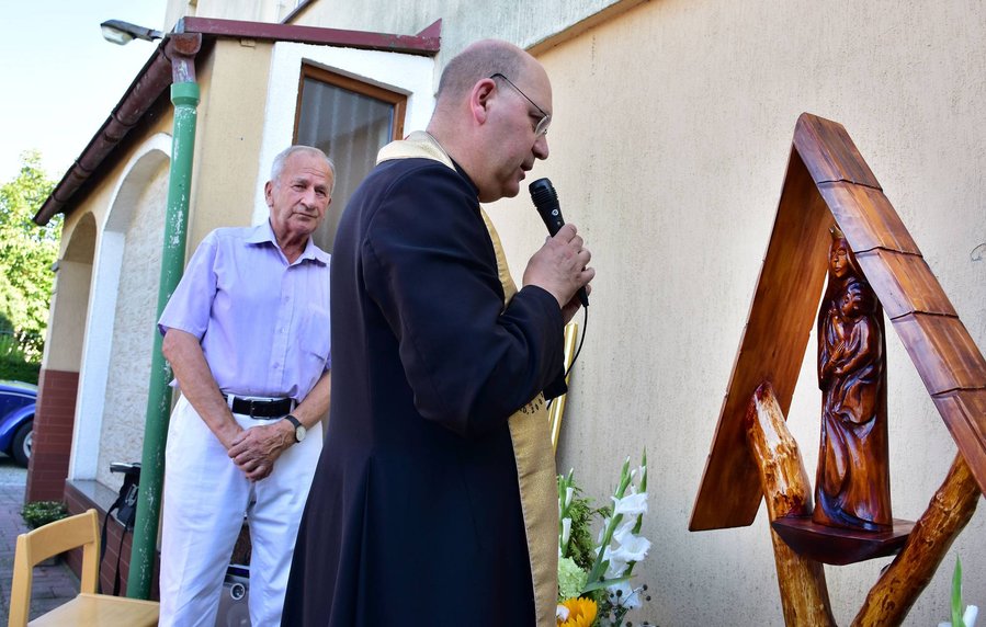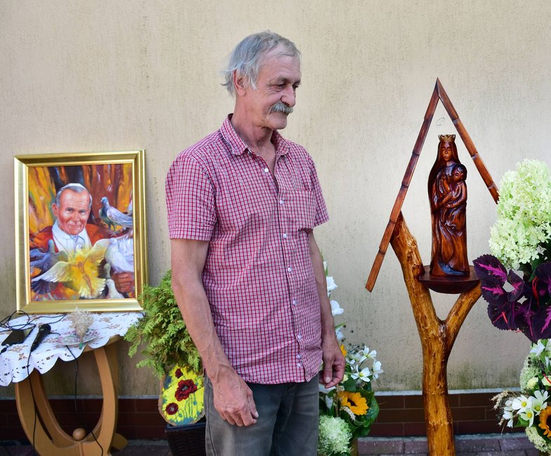 W czasie pandemii zdał sobie sprawę z tego, że powinien komuś za to wszystko podziękować. Kilka miesięcy jeździł po okolicznych lasach szukając odpowiedniej gałęzi, by móc wykonać drewnianą kapliczkę. Gdy znalazł gałąź, o pomoc poprosił rzeźbiarza Mariana Malińskiego. Jego Maryja z dzieciątkiem stanęła przed domem sportowca przy ulicy Rolnej.