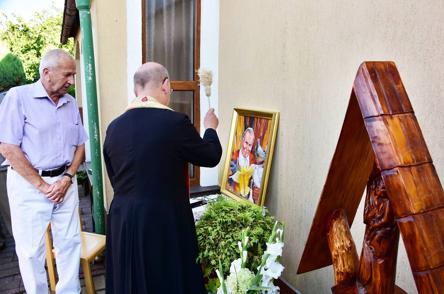W obecności fundatora, rzeźbiarza i zaproszonych gości figurę pobłogosławił 14 sierpnia proboszcz czempińskiej parafii ks. Andrzej Wojciechowski. Poświęcono również obraz papieża Jana Pawła II autorstwa Iwana Malińskiego.