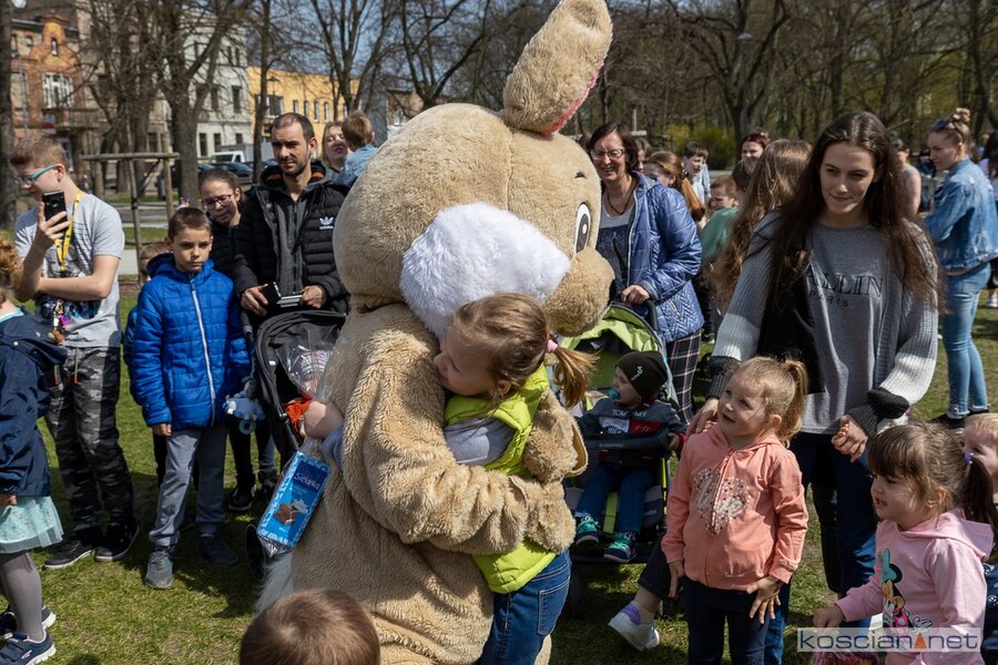 W południe rozpoczął się finał akcji „Kościański Zajączek” zorganizowanej przez radnych Kościana z Klubu „Koalicja Obywatelska”. Podczas świątecznego spotkania ukraińskie dzieci dowiedziały się o wielkopolskich zwyczajach wielkanocnych i wspólnie z polskimi dziećmi wyruszyły na poszukiwanie zajączka. Przy dźwiękach muzyki dzieci i rodzice przeszli sprzed biblioteki na Plac Wolności, gdzie Zając rozdawał dzieciom słodkie upominki.