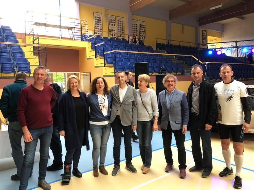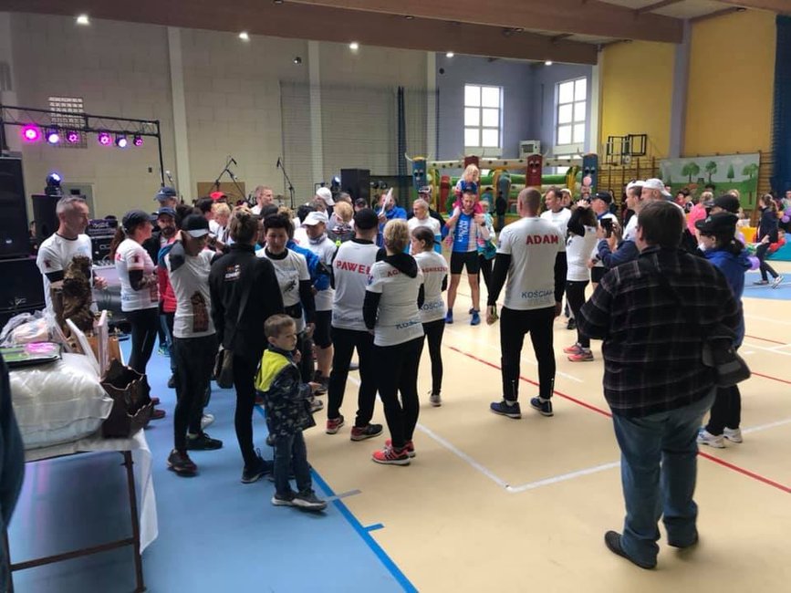 W hali zjawiła się silna grupa biegaczy z Kościan Team, którzy przebiegali przez Racot biorąc udział w I Biegu Prezesa, którego trasa wiodła z Nadleśnictwa Kościan do Nowego Dębca