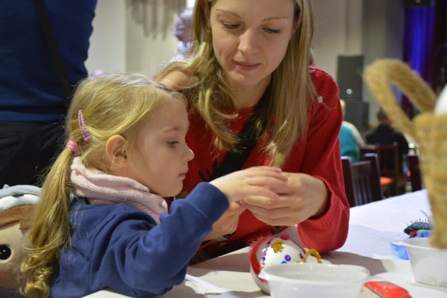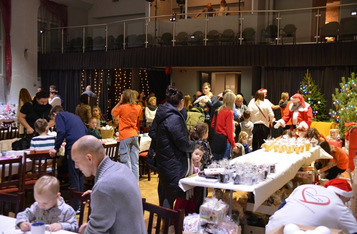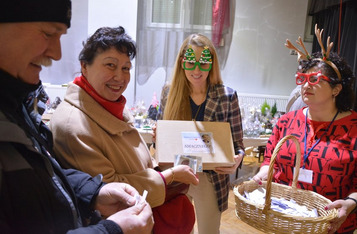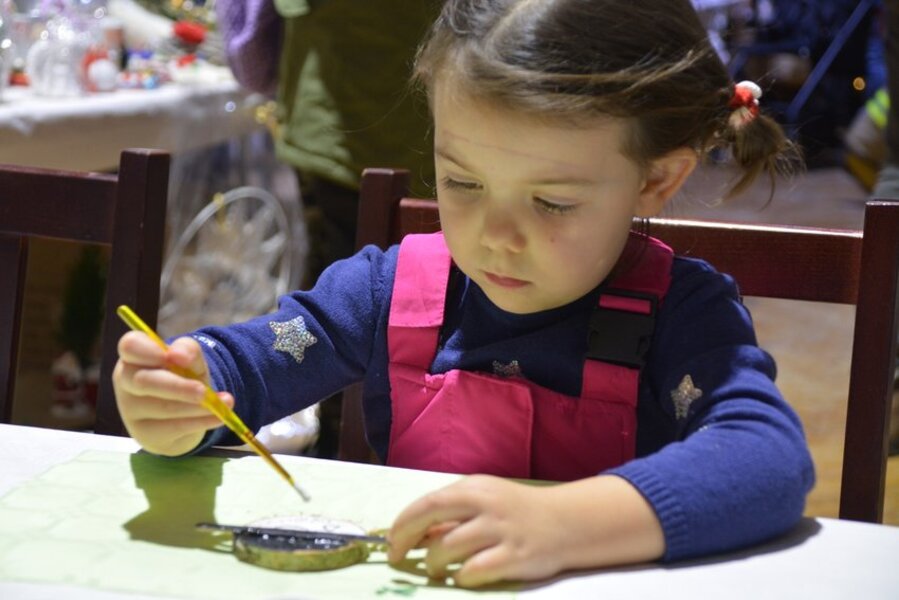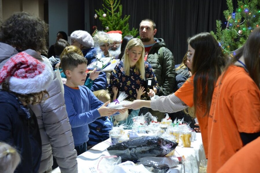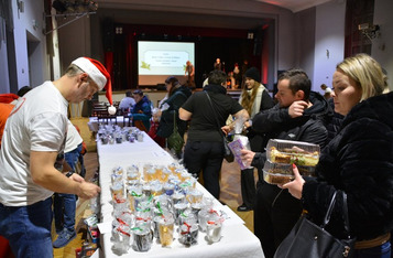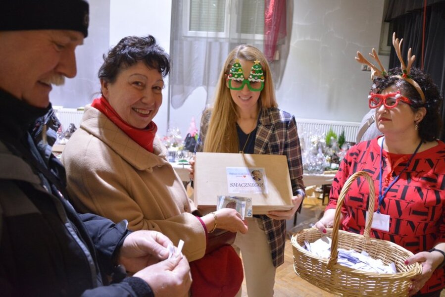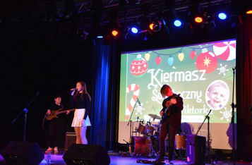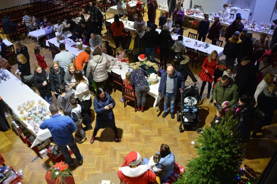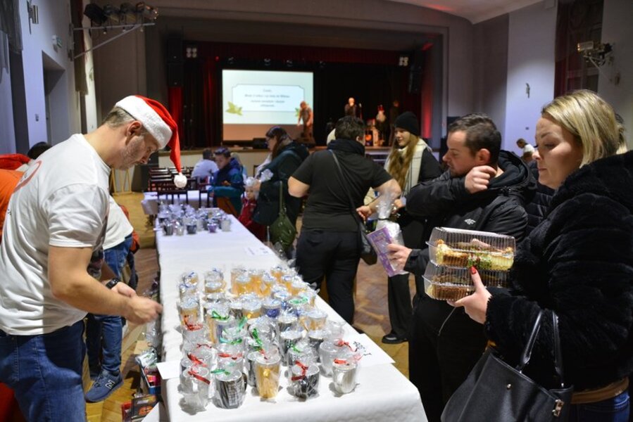 W sali widowiskowej KOK artyści towarzyszyli na scenie kiermaszowi świątecznego rękodzieła, kuszącego wspaniałościami na 17 stołach rozstawionych w szyku jarmarcznym. Upieczono 1680 (!) kawałów domowego ciasta z gatunku „palce lizać”. Dzieci kolorowały kubki, stroiki świąteczne, zdobiły słodkimi koralikami pierniki. Przyglądał się temu św. Mikołaj ze srebrno-białą brodą, podzwaniając raz po raz świątecznym dzwonem. Licytowano przedmioty przekazane przez ofiarodawców.