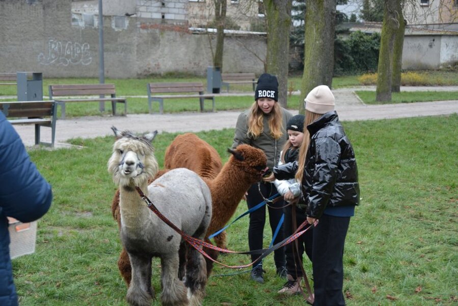 Organizatorów wspierali wolontariusze oraz trzy alpaki do spacerowania i przytulania, dwie rogate kozy, dwa kare kucyki i mama owca z córką, a także strażacy z OSP, świąteczna policja z NYC, Tir i fundatorzy choinek.