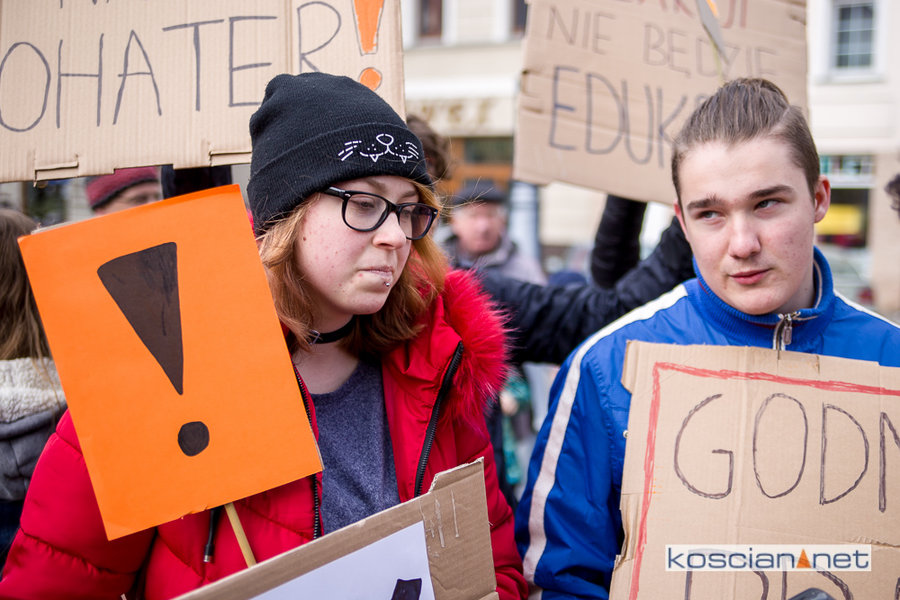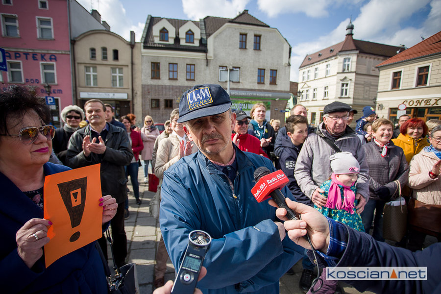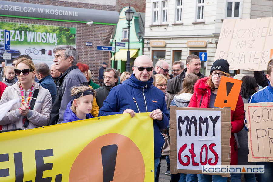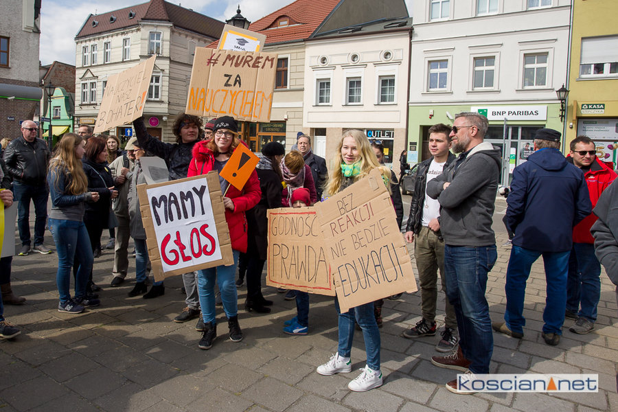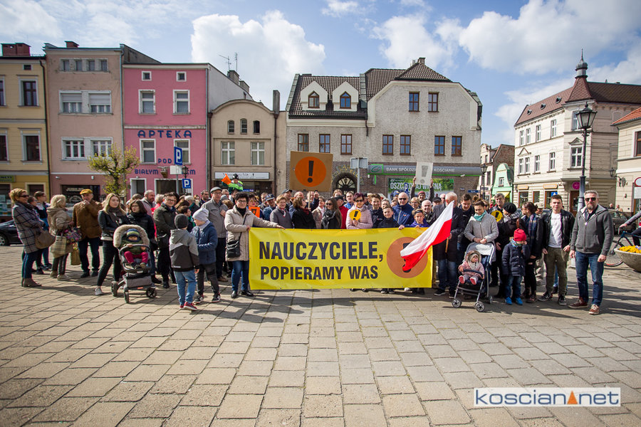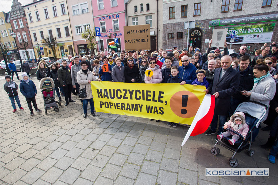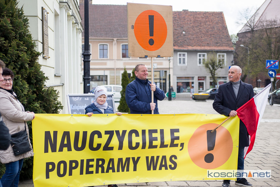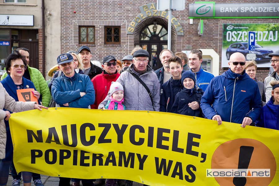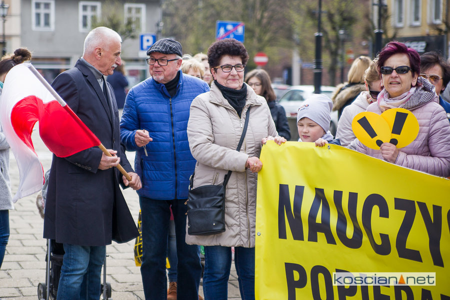 Na pytanie „kto za tym stoi” odpowiedział Jerzy Bartkowiak, były dwukrotny burmistrz Kościana: - Za protestem stoją wolni obywatele Kościana, emeryci, którzy się skrzyknęli dwa dni temu. Pijąc kawę powiedzieli: nie będziemy siedzieć, trzeba wspierać. Wspieramy więc nauczycieli i ich słuszne postulaty. Nie możemy zostawić ich samych. Oni opiekują się naszymi dziećmi, naszymi wnukami. Dajemy dziś wyraz naszej solidarności.