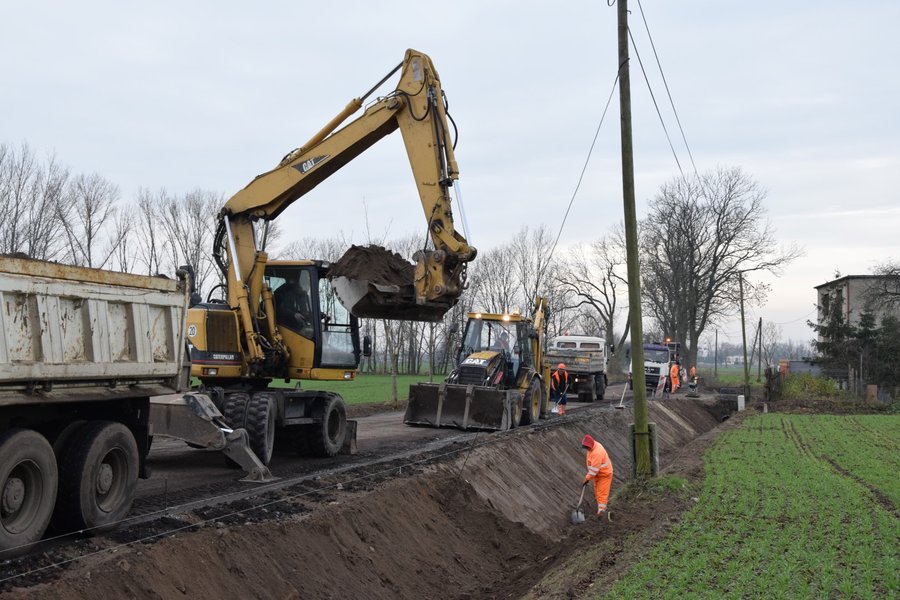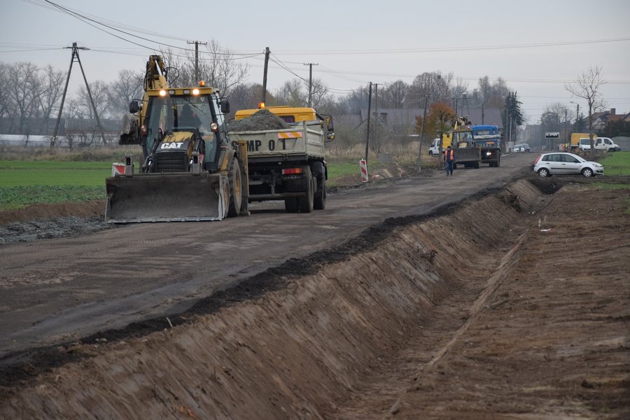W Srocku Wielkim trwają prace przy przebudowie i poszerzeniu drogi powiatowej.
