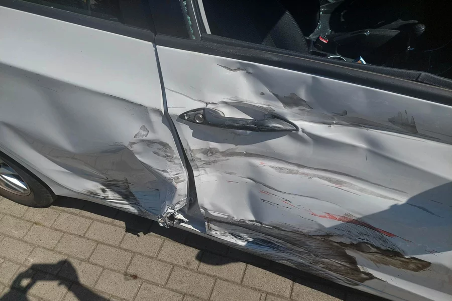Kierowca samochodu osobowego, podczas skrętu w lewo, nie ustąpił pierwszeństwa przejazdu prawidłowo jadącemu motocykliście.