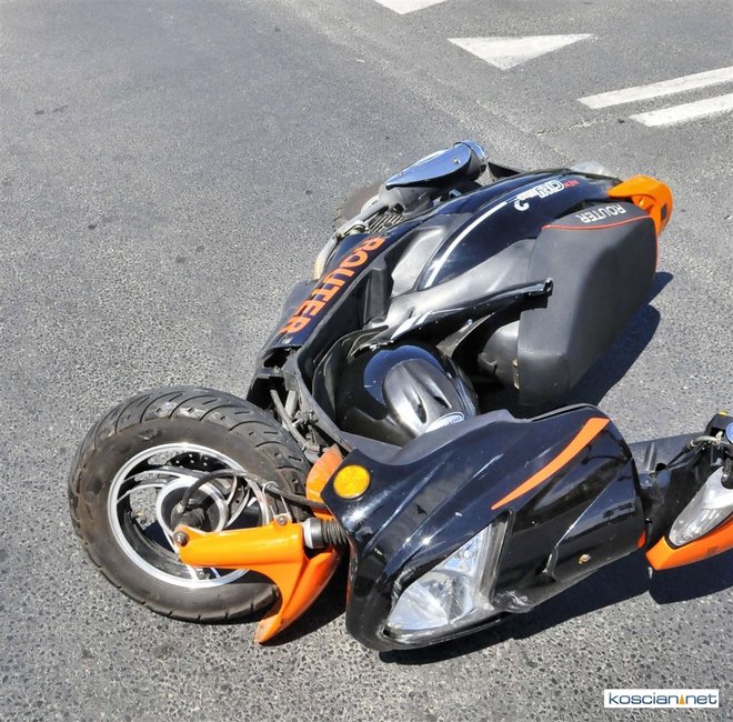 Na ulicy Północnej w Kościanie motorower zderzył się z samochodem osobowym.