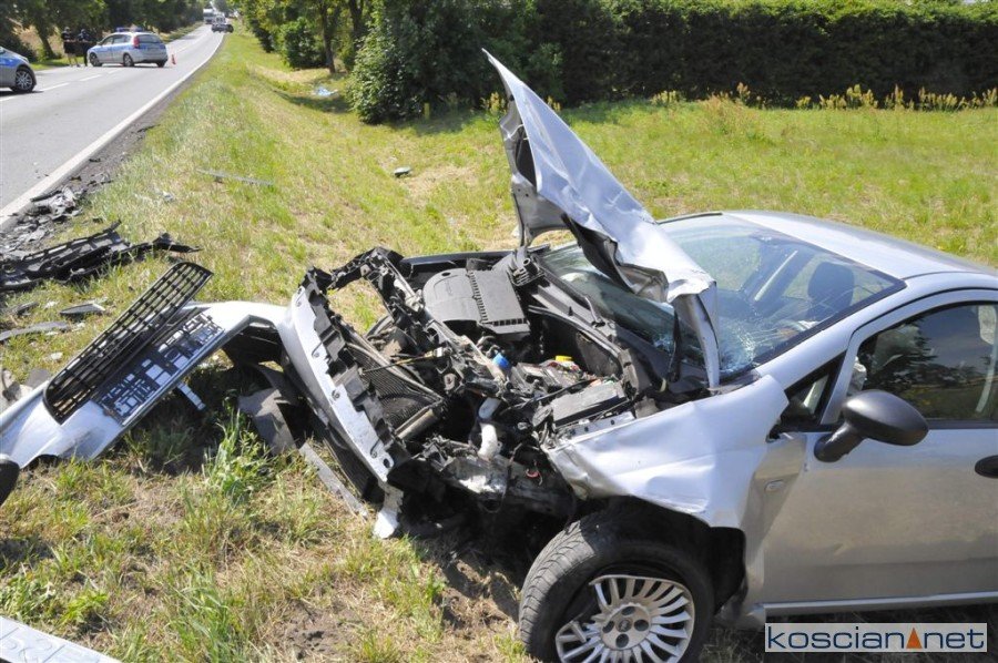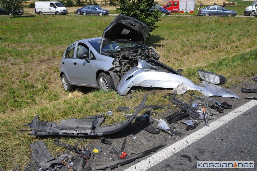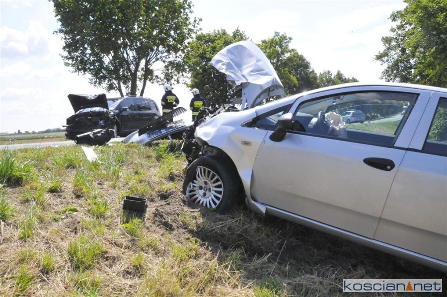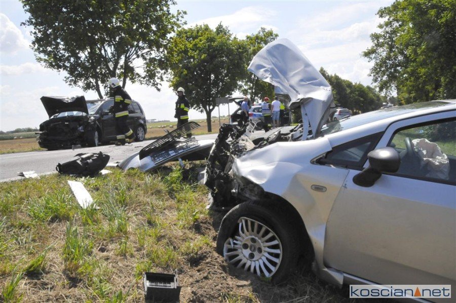 Do wypadku doszło około godziny 11.30 na drodze wojewódzkiej nr 432 na wysokości Osiedla Brzozowiec w Jerce. Kierujący volkswagenem touranem, 40-letni mieszkaniec Leszna, chcąc uniknąć zderzenia z poprzedzającym go mercedesem vito zjechał na przeciwny pas ruchu, gdzie czołowo zderzył się z jadącym od strony Krzywinia fiatem punto. 49-letniego kierowcę fiata przewieziono do szpitala. Okoliczności zdarzenia wyjaśnia kościańska policja.
