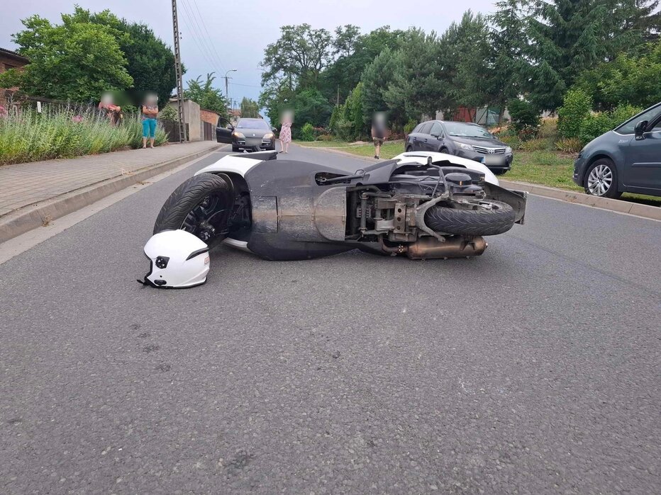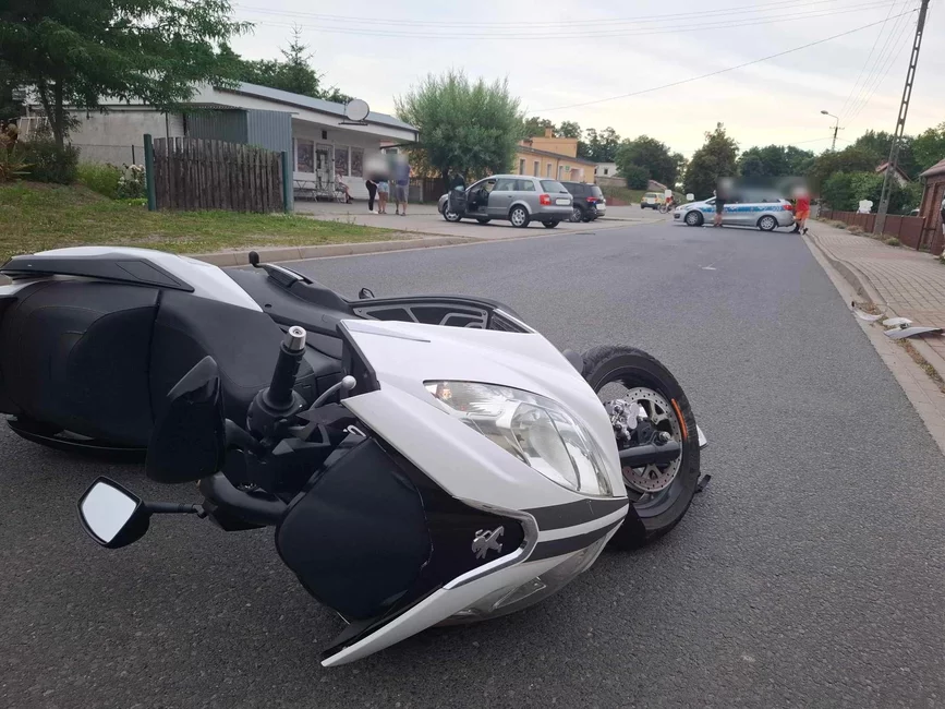 Do wypadku doszło we wtorek, około godziny 20. na ul. Leśnej w Nietążkowie. Kierujący samochodem marki Audi, 30-letni mieszkaniec gminy Śmigiel, wyjeżdżając ze sklepowego parkingu nie upewnił się co do możliwości bezpiecznego wykonania manewru cofania i doprowadził do zderzenia z jadącym ulicą motocyklem. W wypadku ucierpiał 10-letni pasażer motocykla.