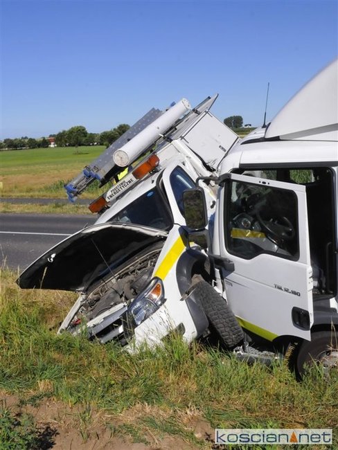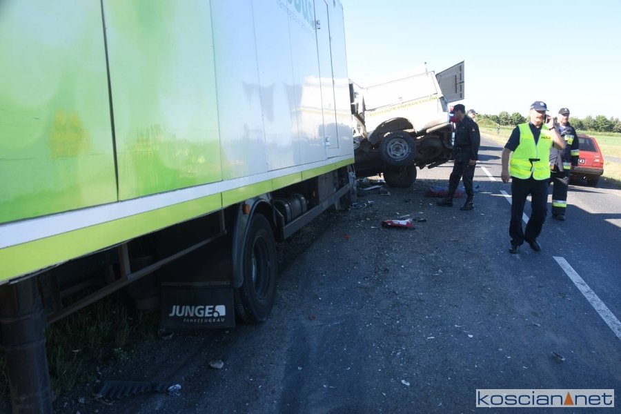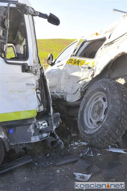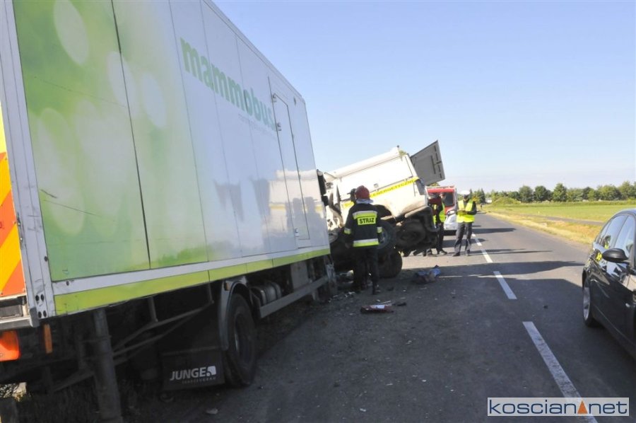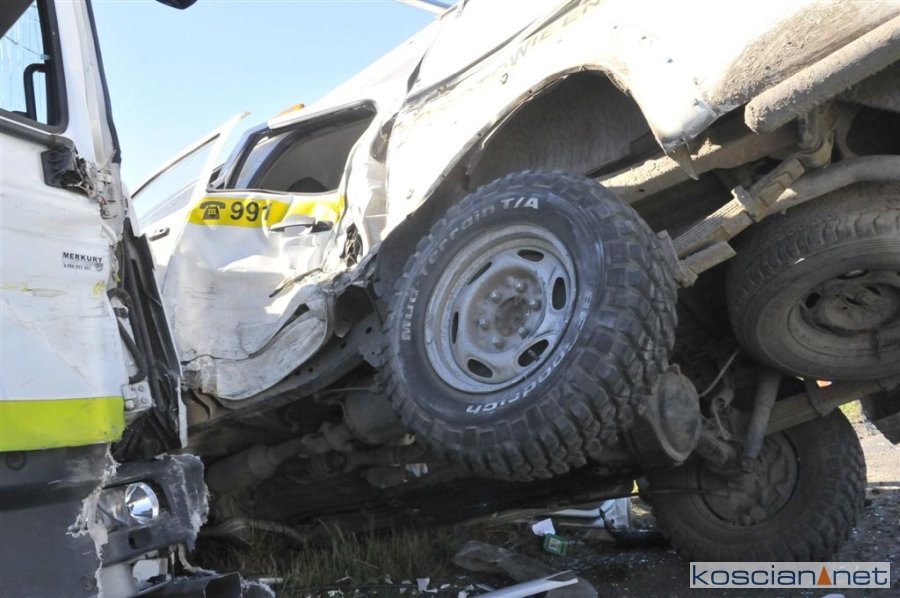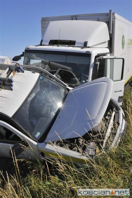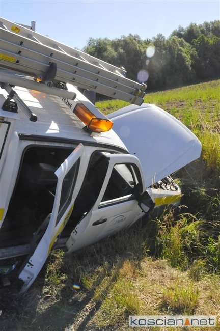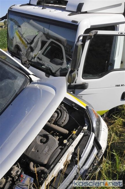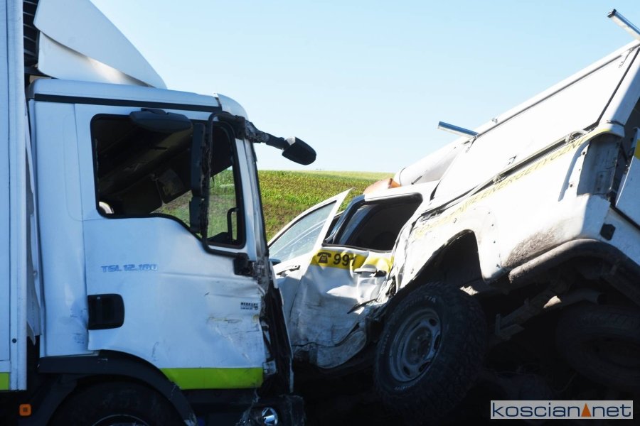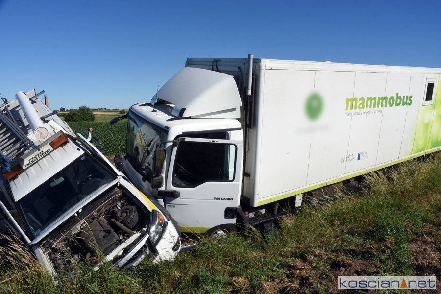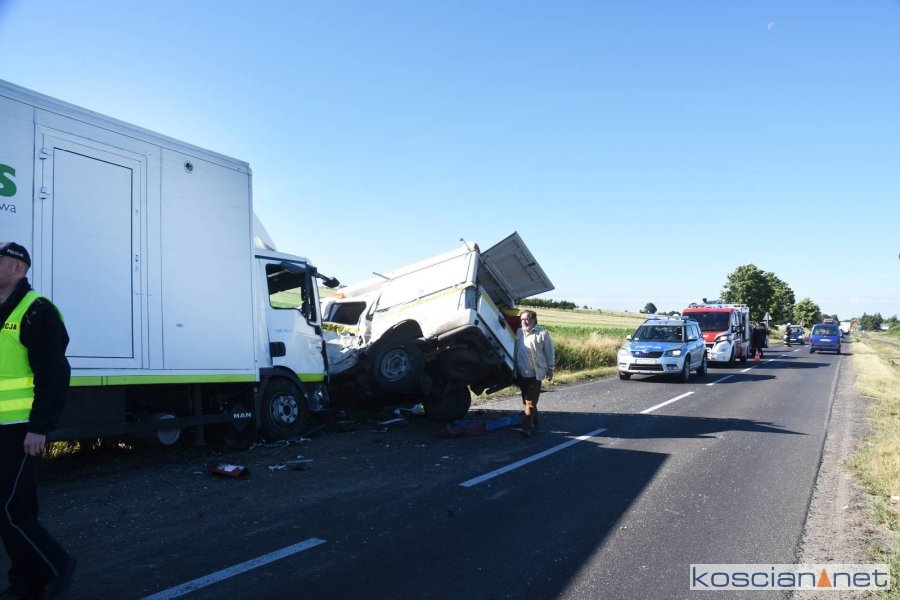 Do wypadku doszło 6 czerwca około godziny 8.00. Dwie osoby uwięzione w samochodzie pogotowia energetycznego wydobyli strażacy z PSP Kościan i OSP Czempiń. Poszkodowanych przewieziono do szpitala w Kościanie. Okoliczności i przebieg zdarzenia ustala policja.