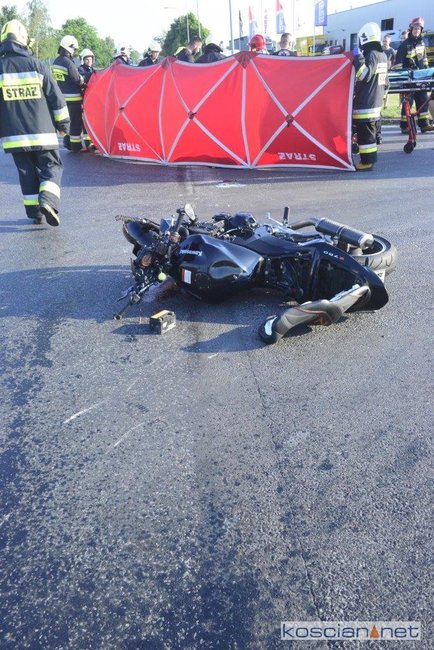 Kierowca wjeżdżający na obwodnicę Kościana nie ustąpił pierwszeństwa przejazdu motocykliście.