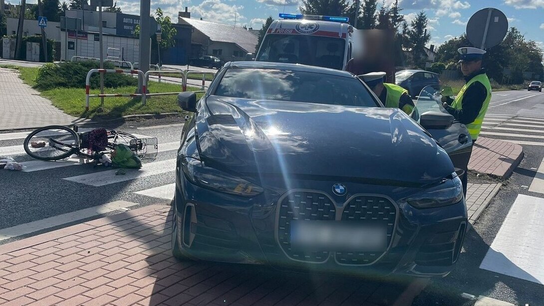 Kierowca bmw potrącił pieszą prawidłowo przechodzącą przez jezdnię.