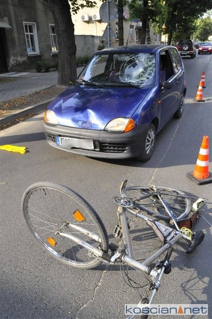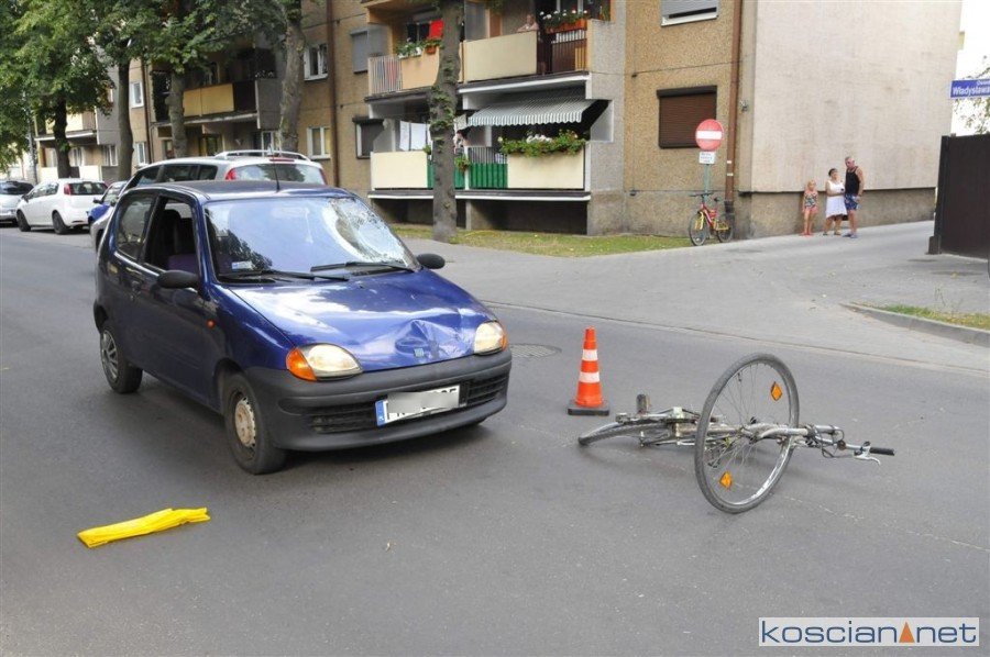 Do zdarzenia doszło w czwartek (2 sierpnia) około godziny 17.30 na ulicy Nacławskiej w Kościanie. Dziewiętnastoletni kierowca fiata seicento potrącił 48-letniego rowerzystę. Do potrącenia doszło prawdopodobnie podczas wykonywania przez samochód lewoskrętu. Okoliczności i przebieg zdarzenia ustala kościańska policja. Poszkodowanego rowerzystę przewieziono do szpitala.