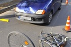Z urazem głowy trafił do szpitala rowerzysta potrącony przez fiata seicento.