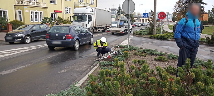 Do zdarzenia doszło w czwartek, 21 października, podczas ulewnego deszczu, jaki w południe przeszedł nad Kościanem. 71-letni kierowca fiata seicento zjeżdżając z Ronda Solidarności nie zauważył znajdującej się na przejeździe dla rowerów 45-letniej mieszkanki Kościana. W wyniku zderzenia rowerzystka doznała urazu nogi i została przewieziona do szpitala na badania. Na szczęście obrażenia nie okazały się poważne, w związku z czym zdarzenie zakwalifikowano jako kolizję. Kierowcę fiata ukarano mandatem.