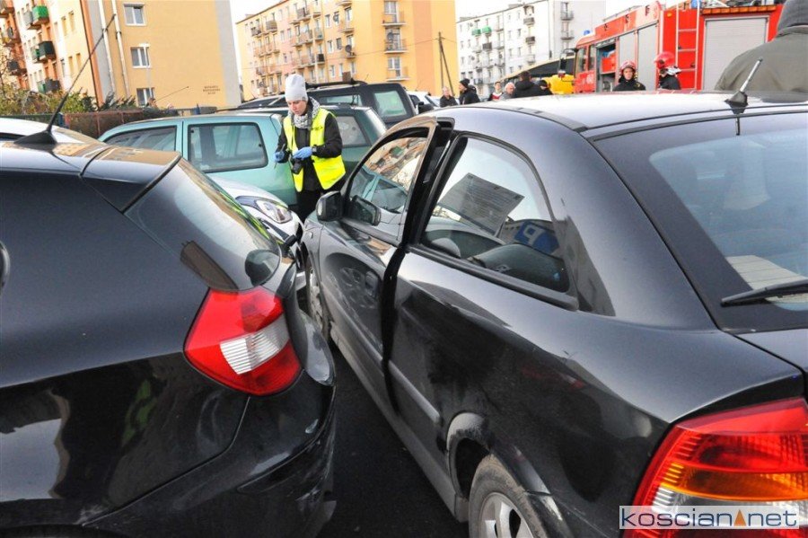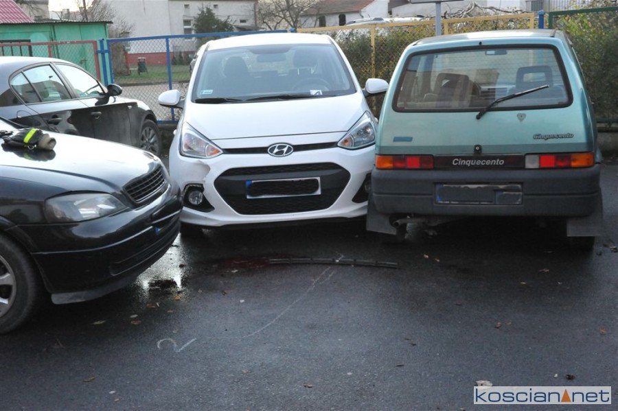Do zdarzenia doszło we wtorek, 4 grudnia, po godzinie 15. w pobliżu Samorządowego Przedszkola nr 1 na os. Piastowskim w Kościanie. Kierująca oplem astra wjechała w zaparkowane samochody, uszkadzając trzy z nich, potrącając jednocześnie 59-letnią pieszą. Poszkodowaną z poważnymi obrażeniami nogi przewieziono do szpitala.