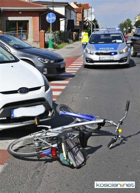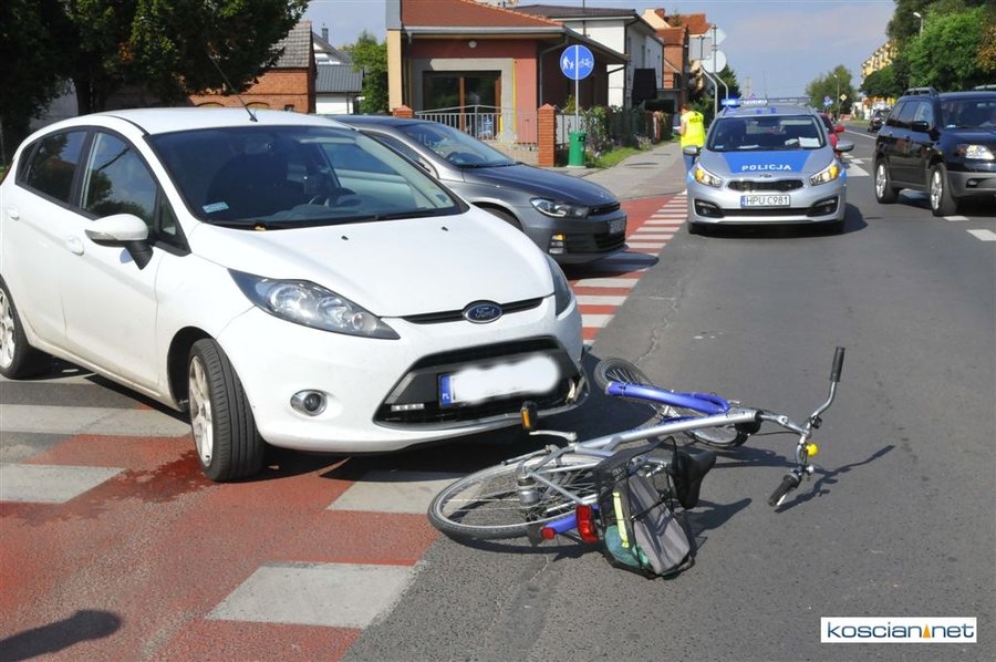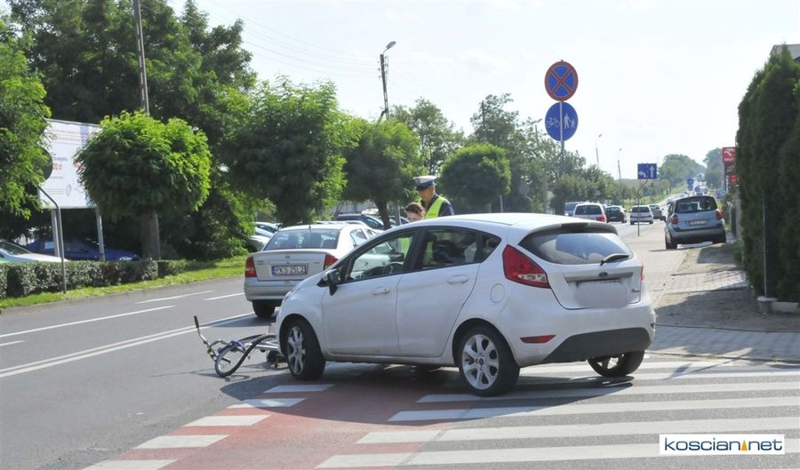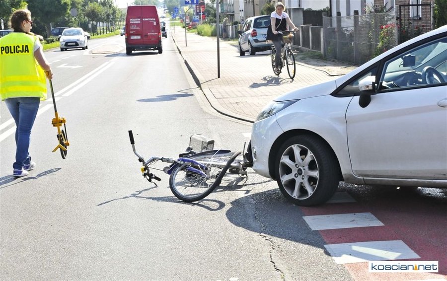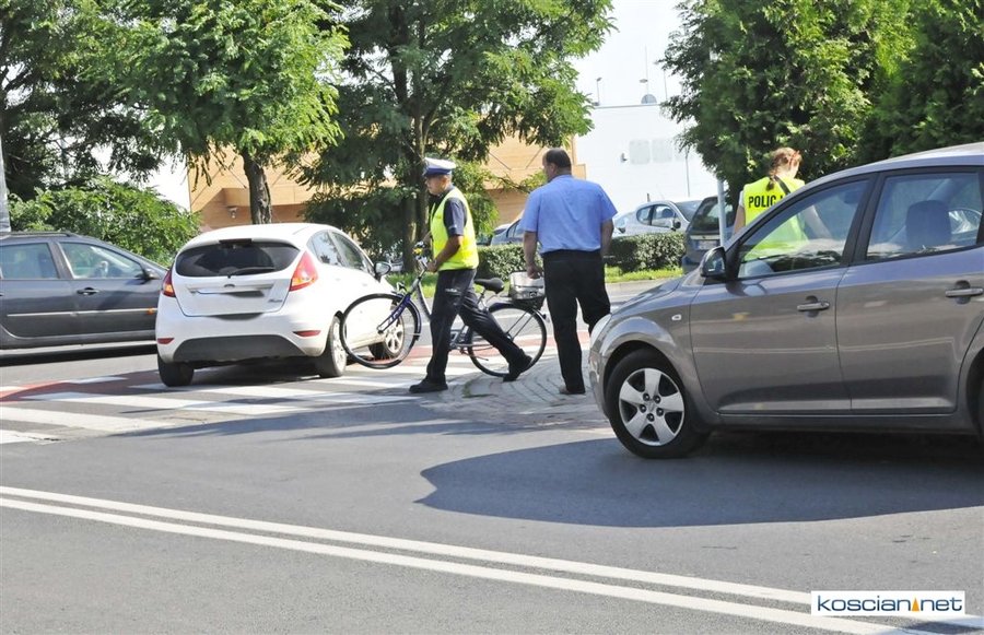 Do kolizji doszło około godziny 15.30 na skrzyżowaniu ulic Śmigielskiej i Żeromskiego w Kościanie. Kierująca fordem fiesta, 30-letnia mieszkanka Kościana, nie ustąpiła pierwszeństwa przejazdu poruszającemu się po ścieżce rowerowej 77-letniemu rowerzyście z Kościana. W wyniku potrącenia mężczyzna doznał ogólnych potłuczeń. Sprawczynię kolizji ukarano mandatem.