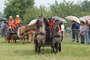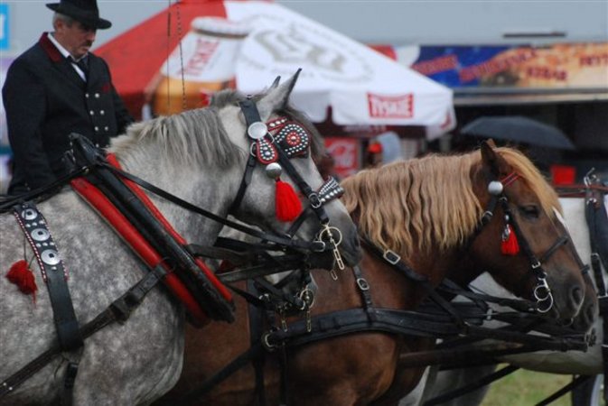 Przelotny, ale rzęsisty deszcz nie opóźnił ani o minutę programu imprezy. O godzinie 12.30 wyruszył na ulice Śmigla tradycyjny korowód pojazdów zaprzęgowych, które otwierała konna banderia miejscowych jeźdźców na pięknych zimnokrwistych koniach ze stajni Wojciecha Peletza.