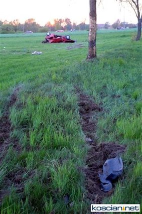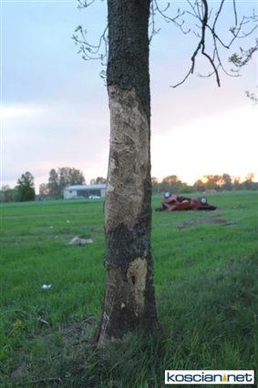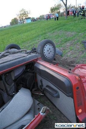 W pobliżu Jerki doszło dziś (3 maja) do poważnego wypadku. Jadący z dużą prędkością samochód wypadł z drogi, uderzył w drzewo i przekoziołkował kilkadziesiąt metrów. Z całkowicie rozbitego auta strażacy wydobyli nieprzytomnego kierowcę, którego przetransportowano do kościańskiego szpitala. Ze wstępnej diagnozy wynika że doznał on zerwania prawego bicepsu, wstrząśnienia mózgu oraz ogólnych potłuczeń. Przyczyny wypadku bada policja.