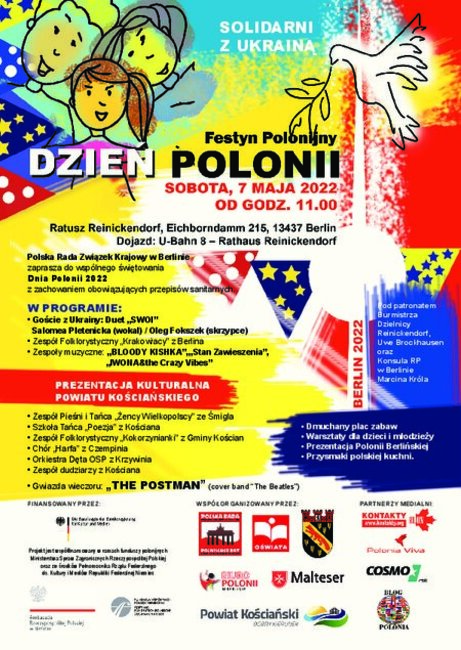 W sobotę, 7 maja, w Berlinie odbył się coroczny Dzień Polonii. Podczas całodniowego festynu na placu przy ratuszu dzielnicy Reinickendorf, prezentowali się wykonawcy z gmin powiatu kościańskiego. Czempiń reprezentował chór Harfa, Krzywiń - Orkiestra Dęta OSP z Mażoretkami, Śmigiel - Zespół Pieśni i Tańca „Żeńcy Wielkopolscy”, Gminę Kościan - Kokorzynianki, Kościan - kapela dudziarska „Sokoły” i Szkoła Tańca „Poezja”.