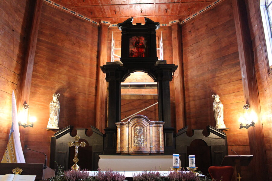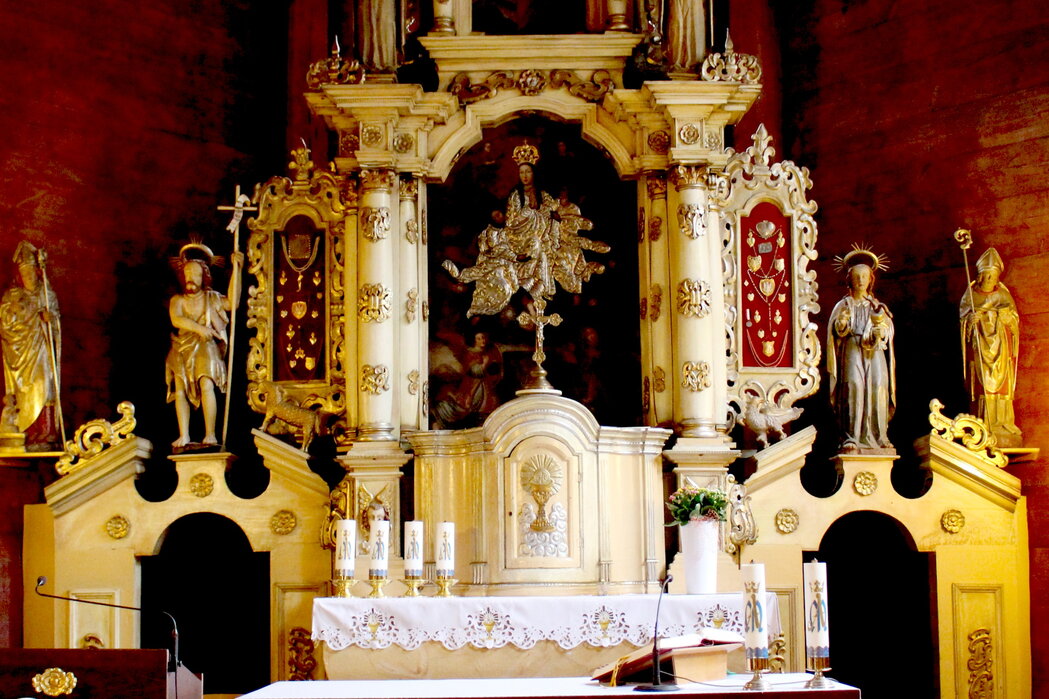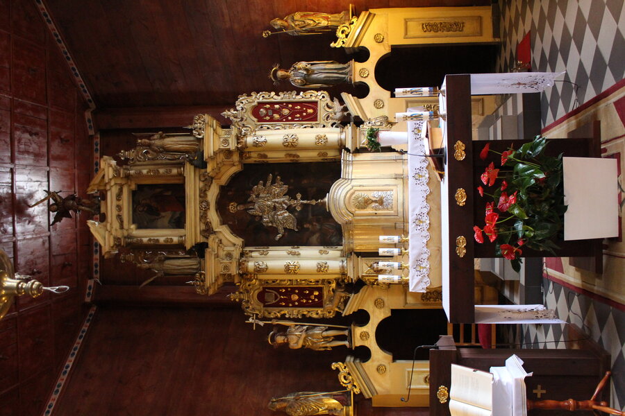 Na zdjęciach ołtarz główny w kościele pw. Wniebowzięcia NMP w Starym Gołębinie.
