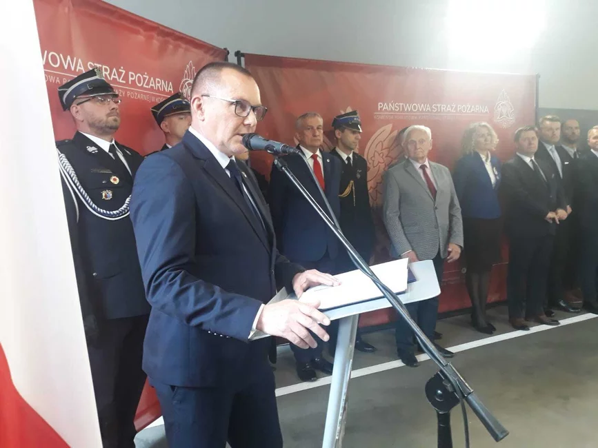 Uroczysty apel rozpoczął się złożeniem meldunku Sekretarzowi Stanu w Ministerstwie Spraw Wewnętrznych i Administracji Wiesławowi Szczepańskiemu. Okolicznościowe wystąpienia wygłosili: Komendant Powiatowy PSP w Kościanie mł. bryg. Jacek Donaj, Prezes Zarządu Oddziału Powiatowego ZOSP RP w Kościanie druh Tomasz Grzelczyk, sekretarz stanu Wiesław Szczepański oraz Starosta Kościański Artur Opas.