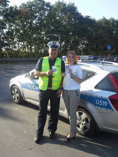 Podczas rutynowej kontroli kierowcy zatrzymanych samochodów mieli możliwość porozmawiania z wolontariuszem PZU oraz otrzymywali niebieskie serce, które ma przypominać o bezpieczeństwie na drodze.