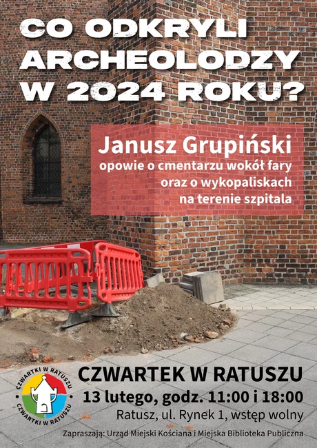 Lutowe spotkania zaczną się nietypowo, bowiem przedpołudniowe i wieczorne spotkanie odbędzie się tego samego dnia. Gościem 30. i 31. „czwartku w ratuszu” będzie archeolog, nauczyciel i historyk Janusz Grupiński, który opowie o ubiegłorocznych wykopaliskach prowadzonych w Kościanie w pobliżu kościoła farnego oraz na terenie szpitala.