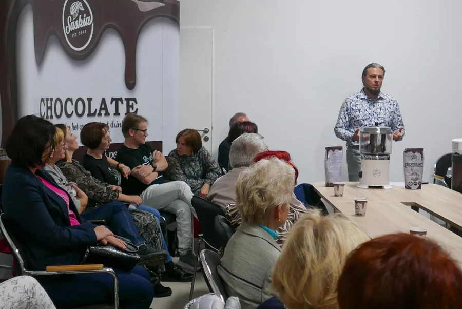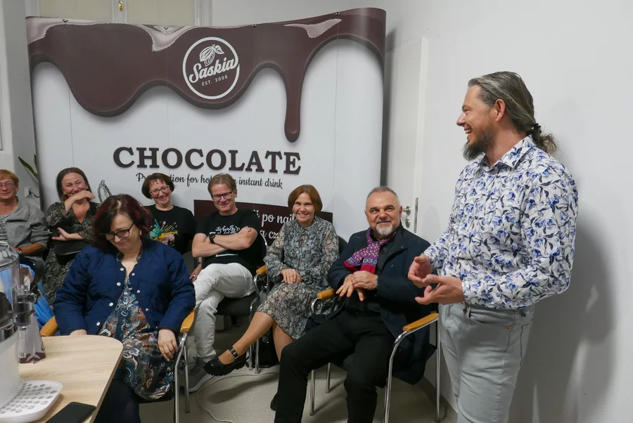 W czwartek, 10 października, w wypełnionej po brzegi sali o wytwarzanej przez siebie gorącej czekoladzie dla gastronomi, która sprzedawana jest pod dobrze znaną kościaniakom marką „Saskia”, opowiadał mistrz barista Mariusz Bałut. Spotkanie zakończyła degustacja gorącej czekolady, którą stworzono według powstałej w Kościanie receptury.