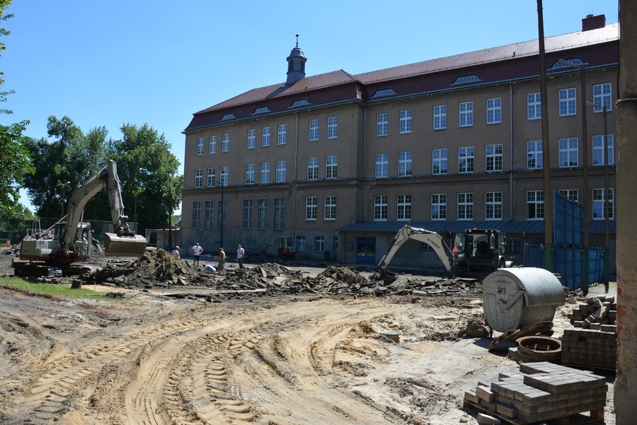 Wokół liceum prowadzone są prace związane z odwodnieniem terenu. Równolegle trwa budowa nowego obiektu sportowego. Jesienią licealiści będą mieli do dyspozycji wielofunkcyjne boisko do piłki nożnej, piłki ręcznej, koszykówki i siatkówki. W miejscu dawnej bieżni powstanie ciąg pieszo-jezdny o szerokości czterech metrów. Pozostaną za to korty tenisowe. Obiekt będzie oświetlony.
