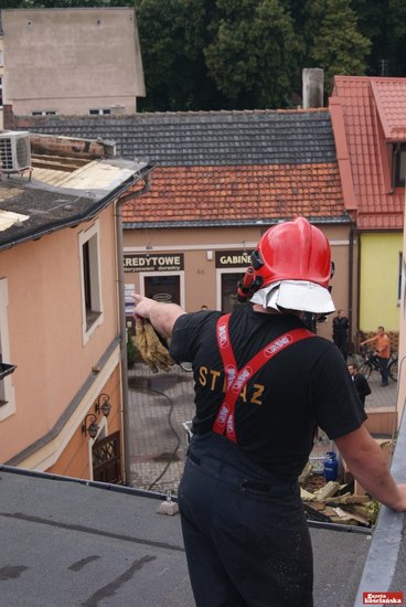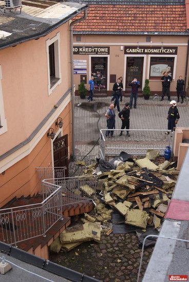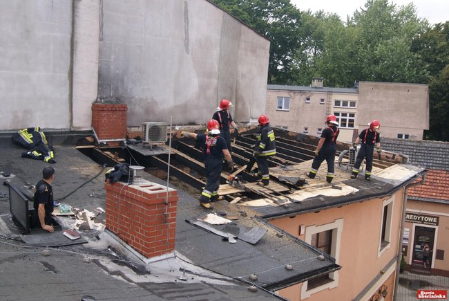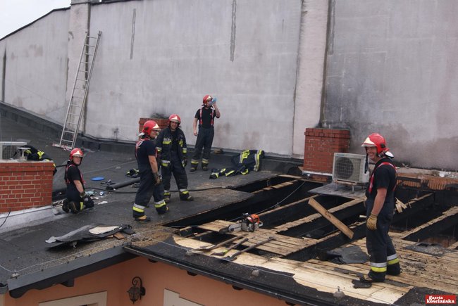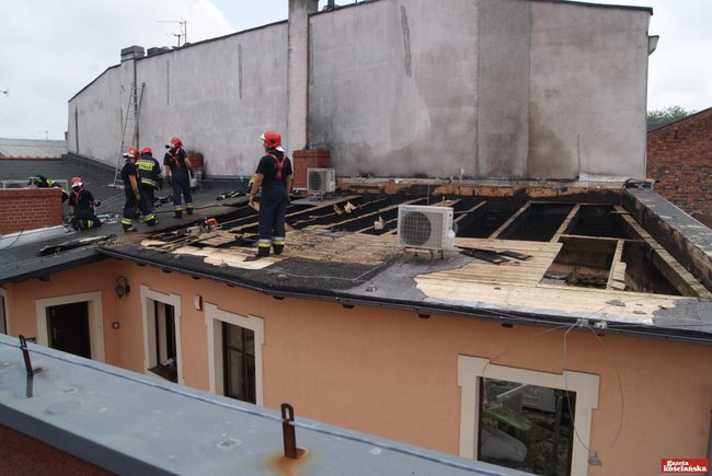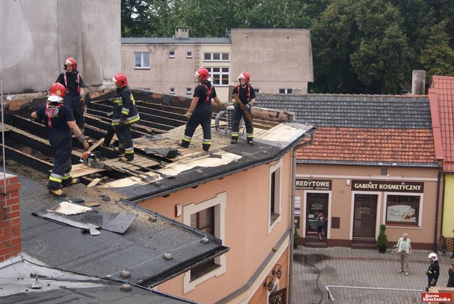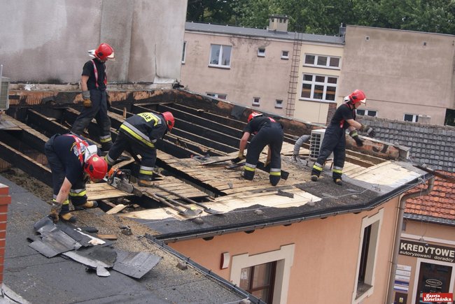 Zapalił się dach, na którym prowadzone były prace dekarskie. Według wstępnej oceny prowadzących akcję gaśniczą to właśnie dekarze mogli wywołać pożar, z którym sprawnie i szybko uporało się pięć zastępów straży pożarnej. Straty oszacowano wstępnie na 40 do 50 tysięcy złotych.