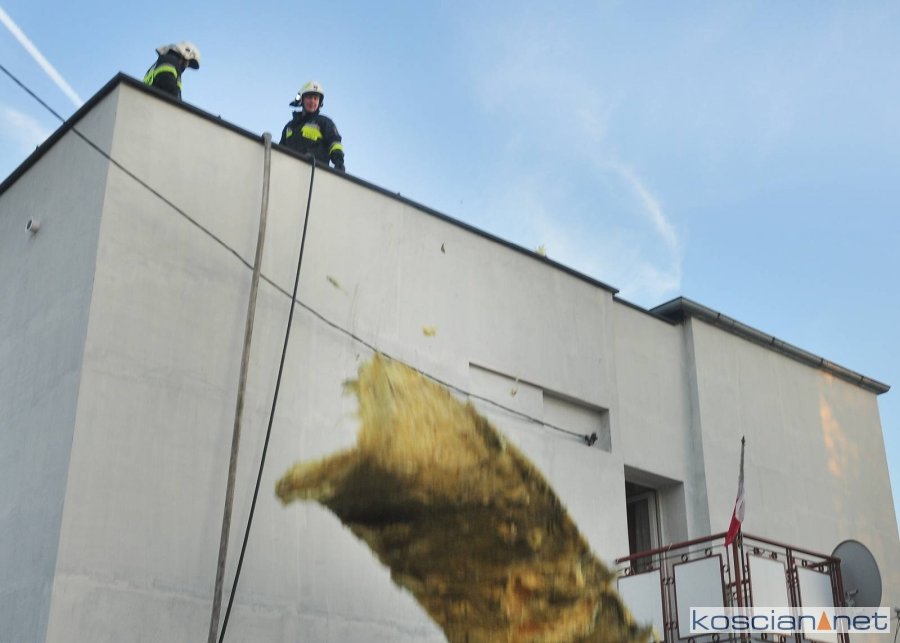 Poddasze zapaliło się przed godziną 15. w poniedziałek, 12 listopada. Pożar gasili strażacy z PSP Kościan, OSP Czempiń i OSP Głuchowo. Podczas akcji gaśniczej trzeba było zerwać znaczną część niedawno wyremontowanego dachu.