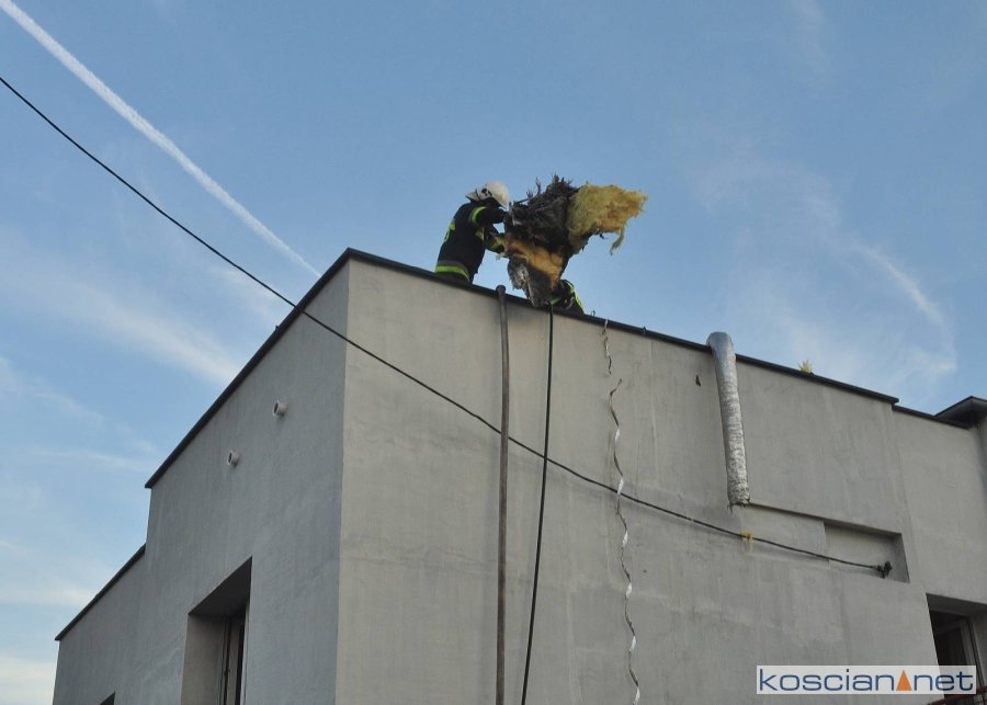 Wentylator instalacji kominkowej zainicjował pożar na poddaszu budynku mieszkalnego przy ul. St. Kuczmerowicza w Czempiniu.