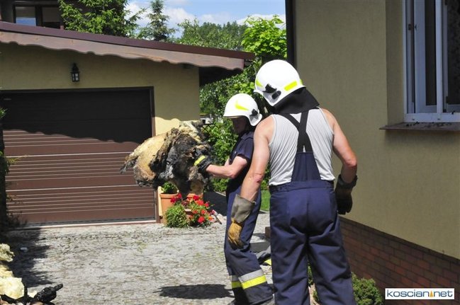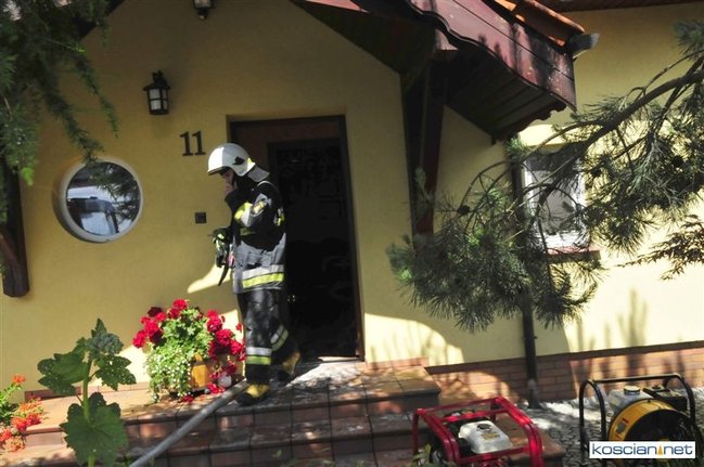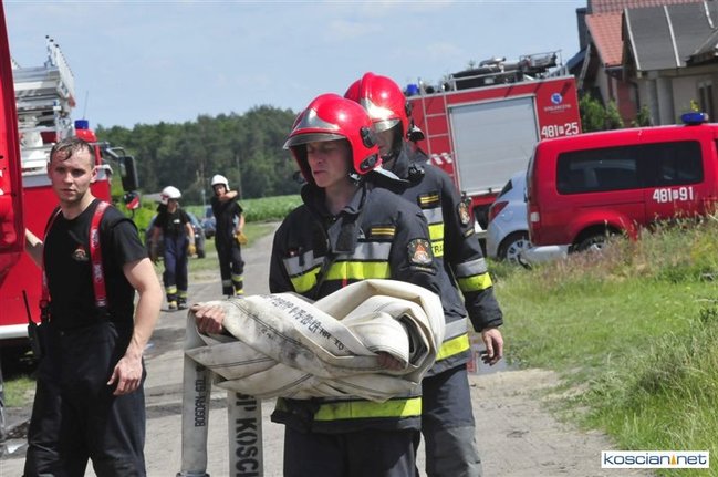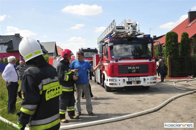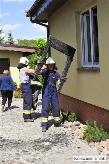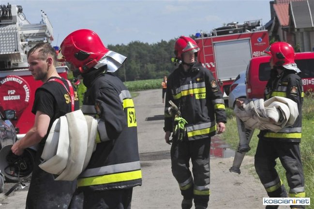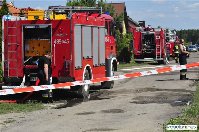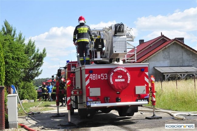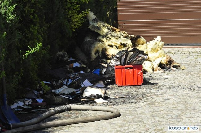i monitorowano budynek za pomocą kamery termowizyjnej. Przed zakończeniem czterogodzinnej akcji strażacy zabezpieczyli plandekami otwory okienne w dachu. Na miejscu pożaru pojawili się przedstawiciele samorządu gminy Kościan, Gminnego Ośrodka Pomocy Społecznej oraz Sołtys organizując wsparcie dla pogorzelców.