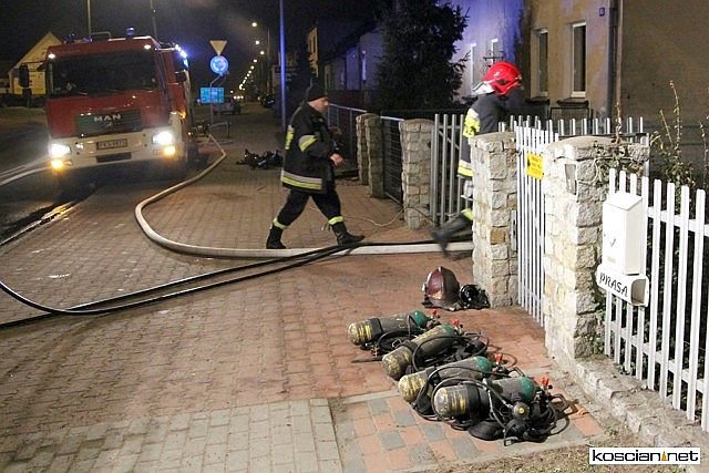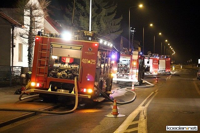 Przez cztery godziny walczono z pożarem domu przy ul. Poznańskiej w Kościanie. Próbujący gasić ogień właściciel domu trafił do szpitala z objawami zatrucia i niewielkimi poparzeniami. Straty oszacowano wstępnie na 70 tys. zł. Wartość uratowanego mienia przekracza 300 tys. zł