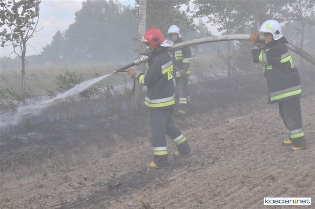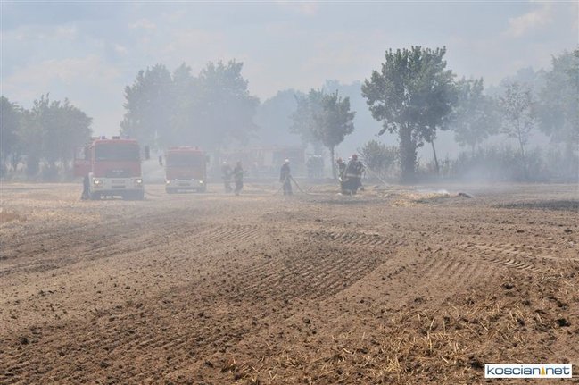 Straż pożarna w Kościanie przyjęła wczoraj zgłoszenie o pożarze na polach pomiędzy Chorynią i Wławiem. Na miejsce wysłano dwa zastępy zawodowych strażaków oraz siedem zastępów OSP z Racotu, Gryżyny, Turwi, Kościana, Kopaszewa, Jerki i Krzywinia. Ogień ugaszono ratując rosnącą obok pszenicę.