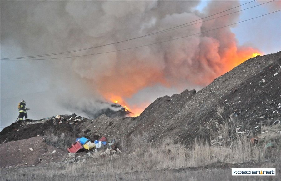 - Płonęły odpady po wstępnym recyklingu, w tym metalowe urządzenia jak pralki czy lodówki. Paliły się także tworzywa sztuczne i pianka tapicerska, stąd właśnie ten gęsty dym. Wybuchały będące pod ciśnieniem pojemniki po aerozolach – relacjonuje sekcyjny Dawid Kryś z Komendy Powiatowej Państwowej Straży Pożarnej w Kościanie. - Pracownicy firmy próbowali przed naszym przybyciem gasić, ale rozmiary pożaru spowodowały, że były to działania nieskuteczne.