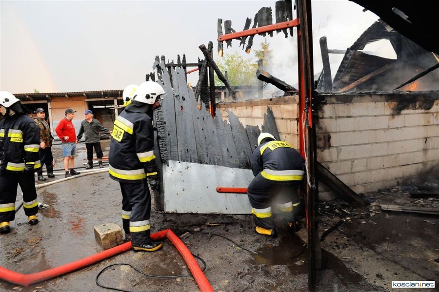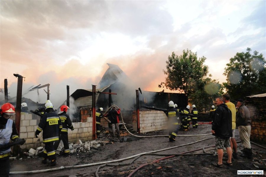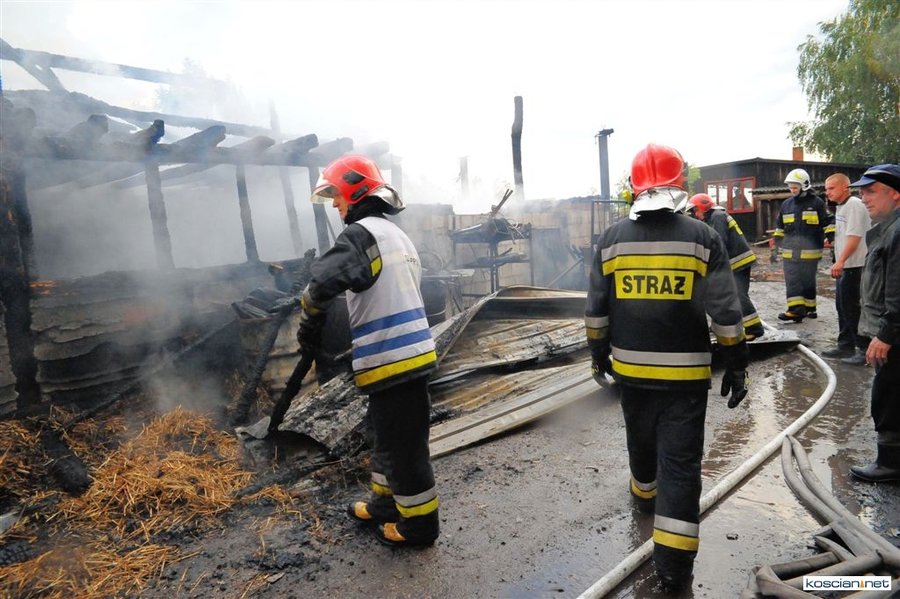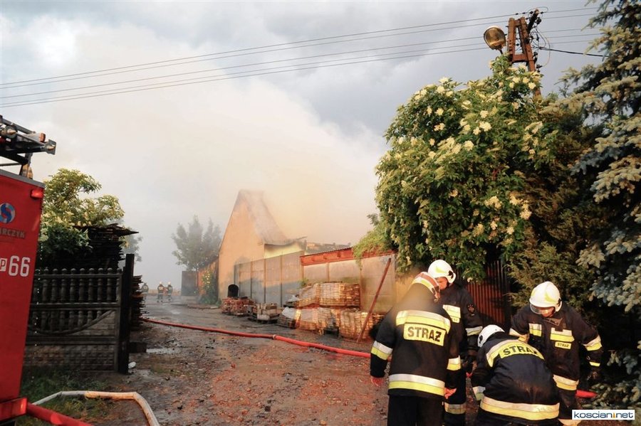 W środę o godzinie 19.30 w Zbęchach Pole (gmina Krzywiń) po uderzeniu pioruna w ogniu stanęła stodoła wypełniona tysiącem presaków słomy i kilkudziesięcioma metrami sześciennymi tarcicy. Budynek sąsiadował z warsztatem, stolarnią i domem mieszkalnym.