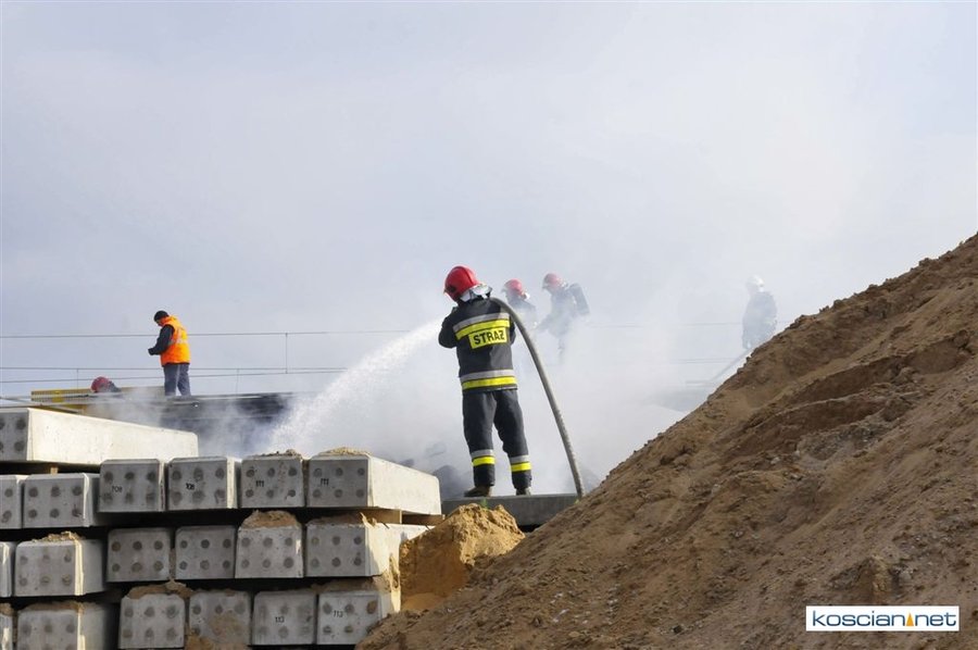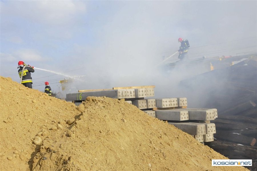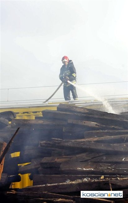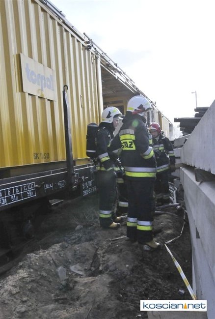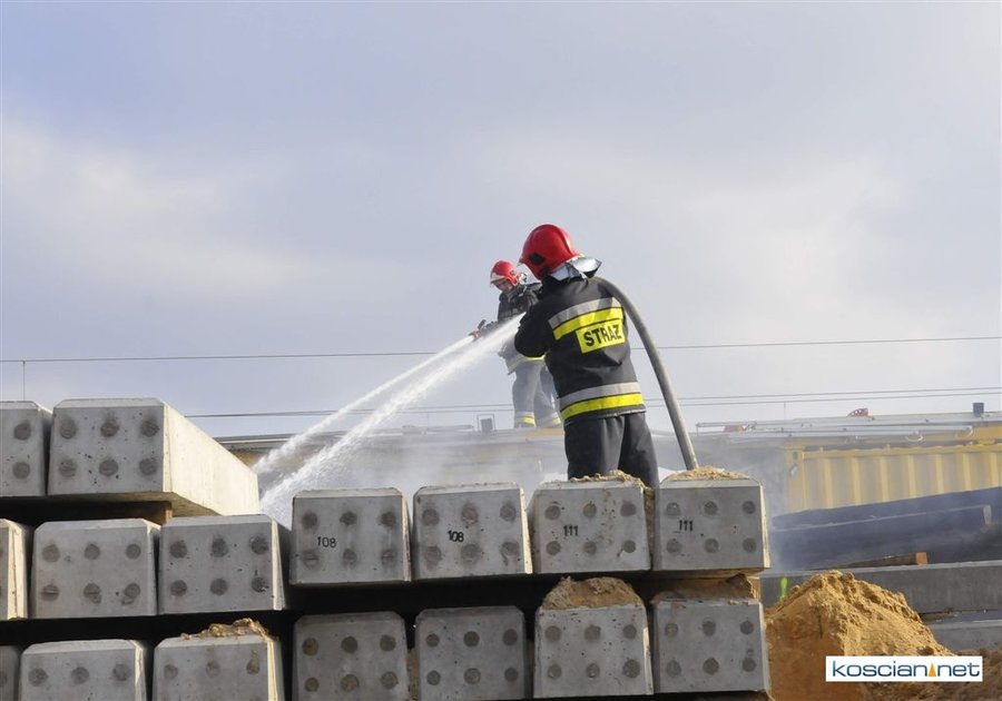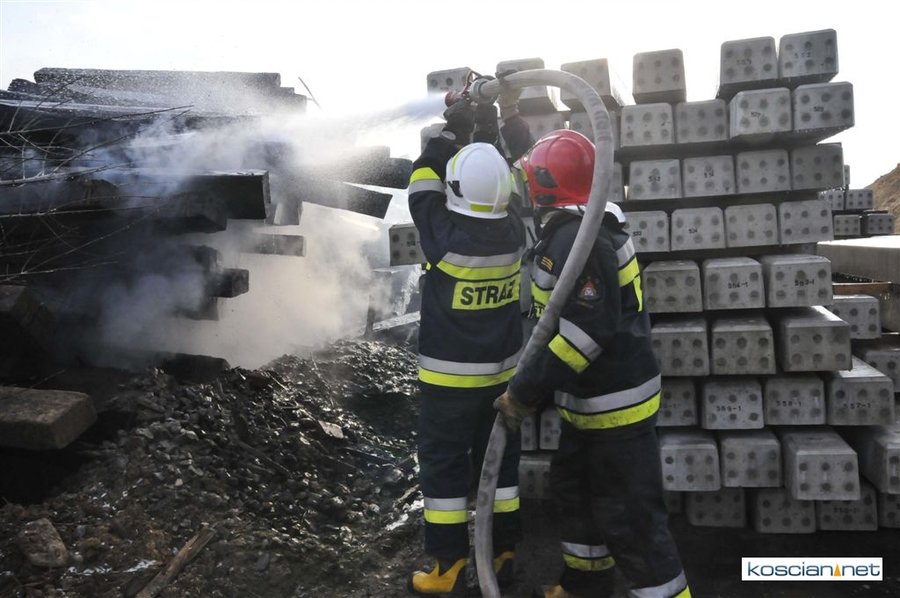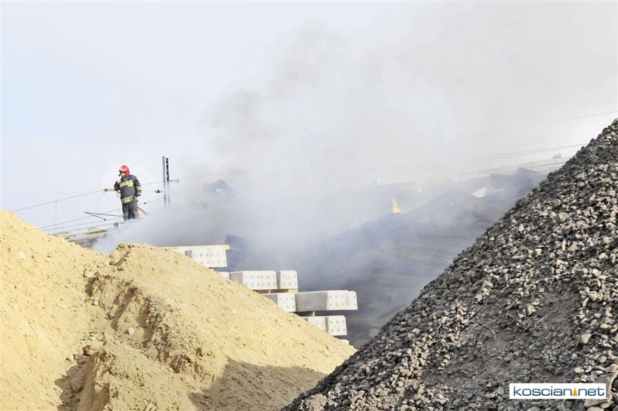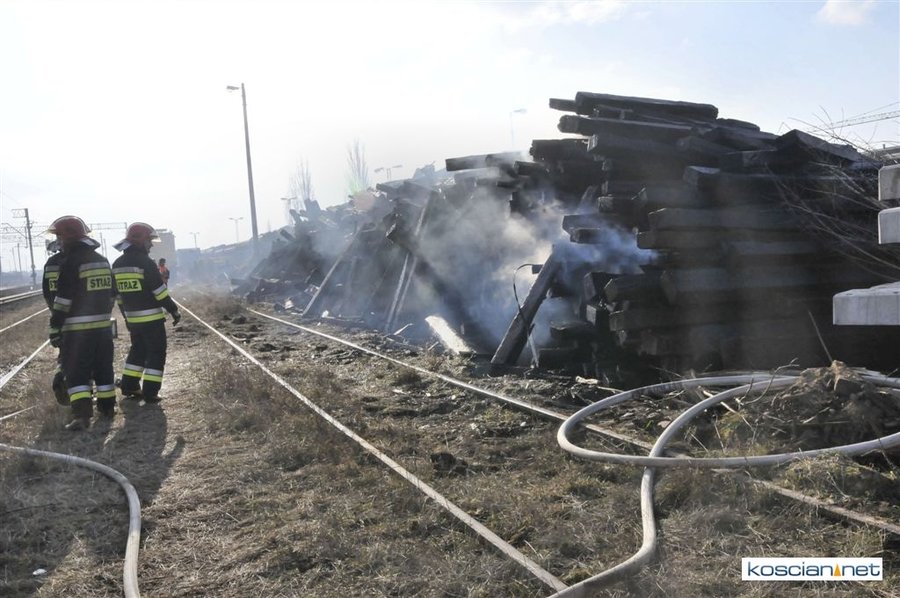 Pożar zauważono przed godziną 14. Paliły się zdemontowane podkłady kolejowe składowane nieopodal kościańskiego dworca. Trzynastu strażaków przez trzy godziny walczyło z ogniem, który zagrażał stojącemu na torach składowi technicznemu. Podkłady prawdopodobnie zapaliły się od spalin wydobywających się z uruchomionego nieopodal składowiska agregatu prądotwórczego.