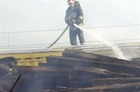 Paliły się podkłady kolejowe składowane przy remontowanej linii kolejowej E59.