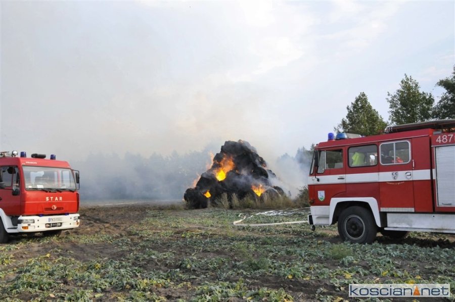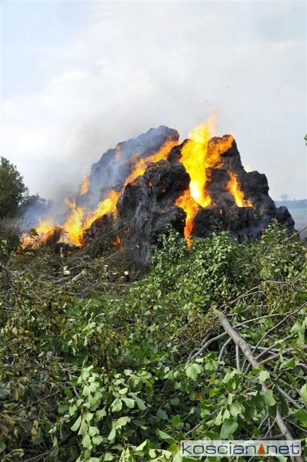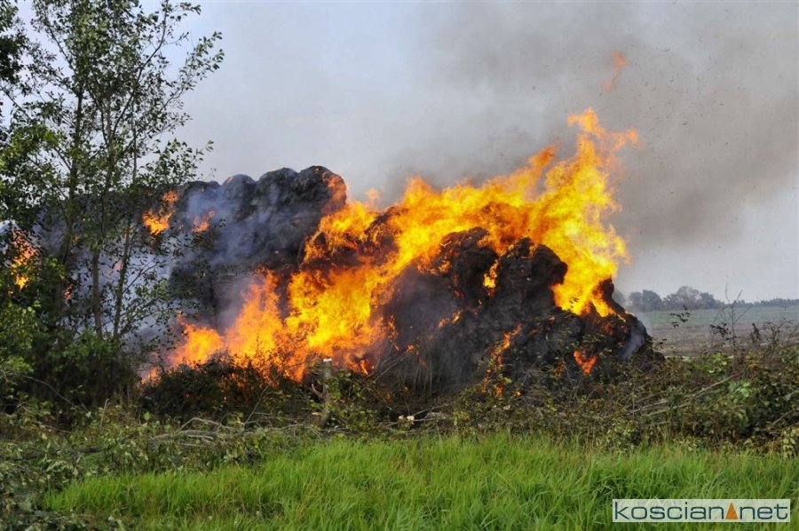 Ponad trzysta balotów słomy spłonęło na polu w Czerwonej Wsi (gmina Krzywiń).