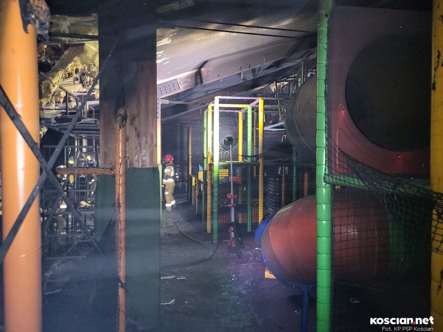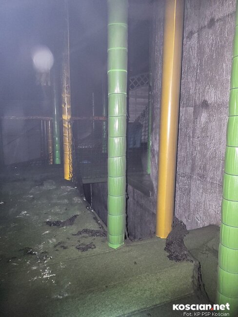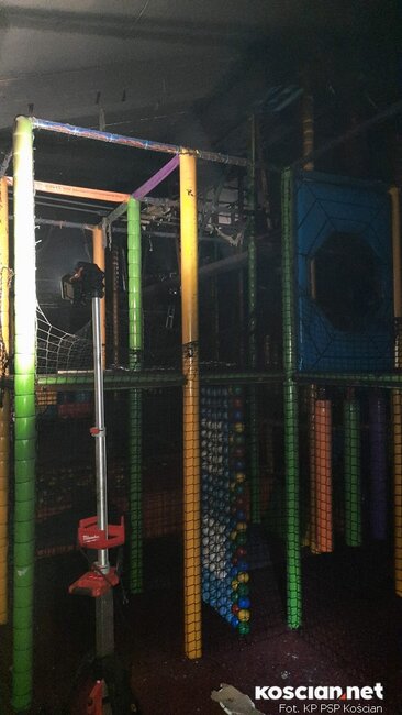 Blisko trzy godziny gaszono pożar w sali zabaw dla dzieci Nufrik w Kościanie.