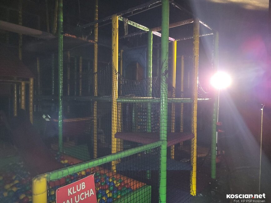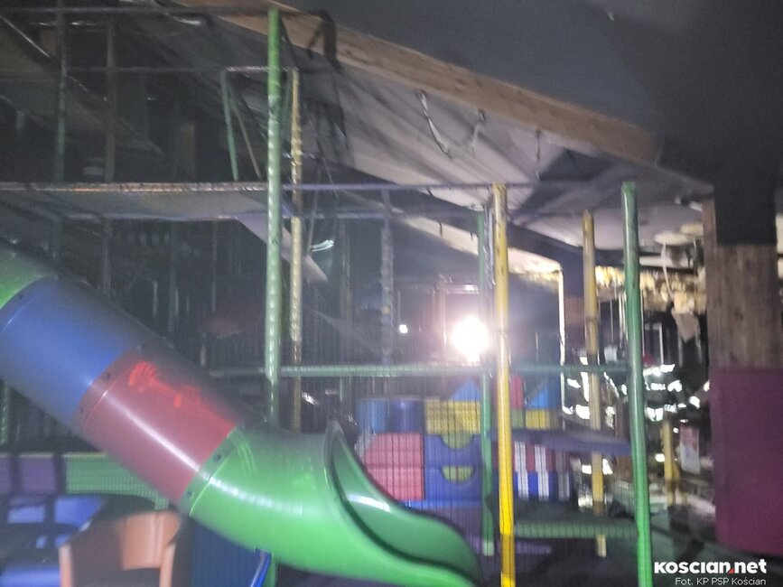 Ogień strawił część dachu i stopił wykonane z tworzyw sztucznych wyposażenie sali zabaw. Trwa szacowanie strat. Na razie nie jest znana przyczyna pożaru.