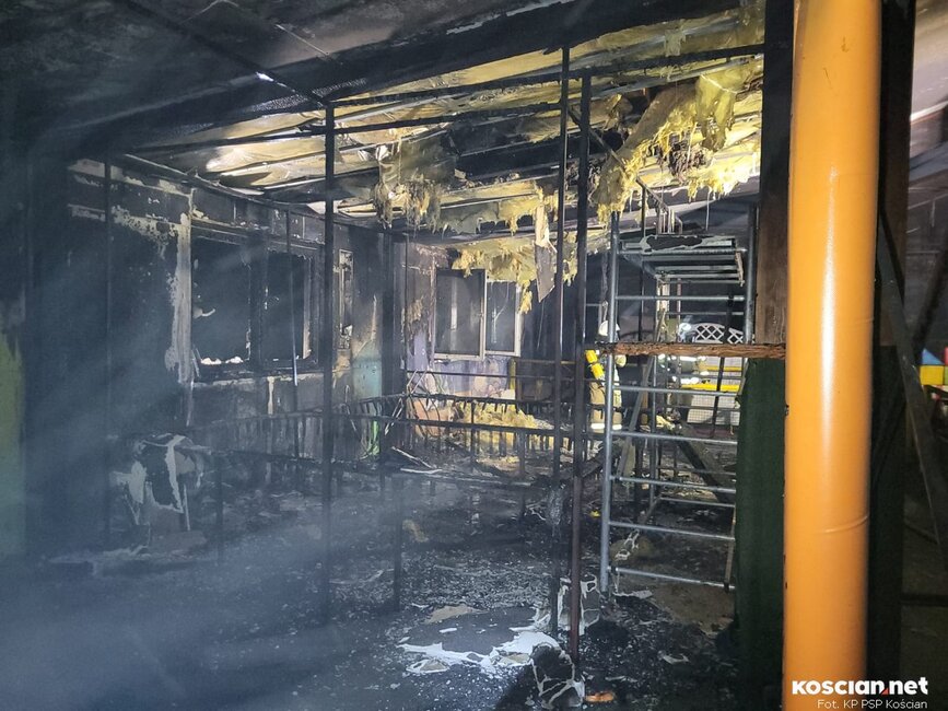 Pożar wybuchł w nocy z poniedziałku na wtorek (8/9 sierpnia). Straż pożarna otrzymała zgłoszenie o godzinie 2.30. Ogień na dachu sali zabaw Nufrik zauważyła postronna osoba. Z pożarem przez blisko trzy godziny walczyli strażacy z PSP Kościan, OSP Kościan i OSP Racot.