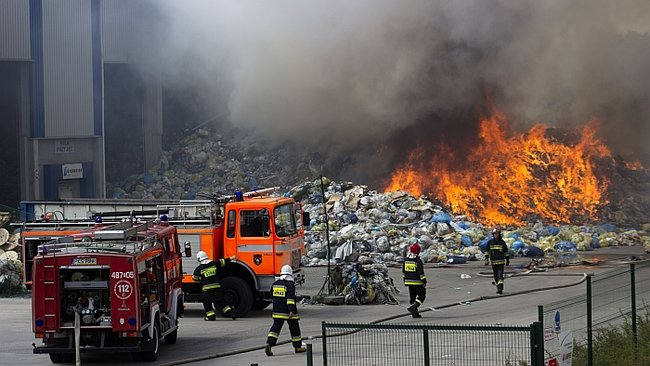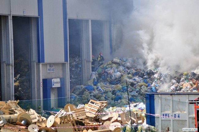 Ponad stu strażaków walczyło z pożarem w Centrum Zagospodarowania Odpadów Selekt w Piotrowie Pierwszym (gmina Czempiń).