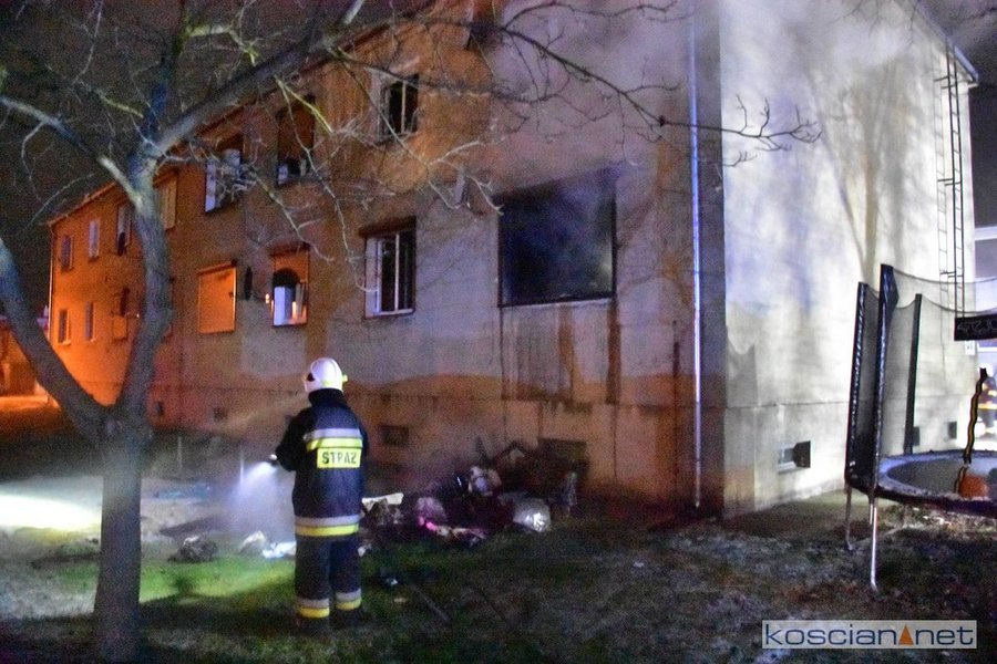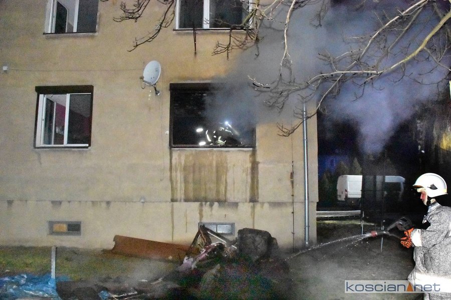 - Informację o zdarzeniu otrzymaliśmy o godz. 5.17. Pożar powstał w mieszkaniu na parterze, w oknie znajdowała się kobieta, którą strażacy natychmiast ewakuowali na zewnątrz – informuje Dawid Kryś, oficer prasowy KP PSP w Kościanie.- Strażacy uzyskali informację, że w środku znajduje się jeszcze jedna osoba. Przeszukując płonące mieszkanie bardzo szybko odnaleźli nieprzytomnego mężczyznę i ewakuowali go na zewnątrz.