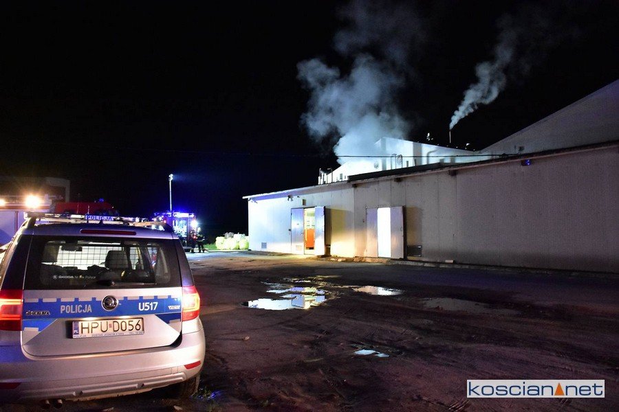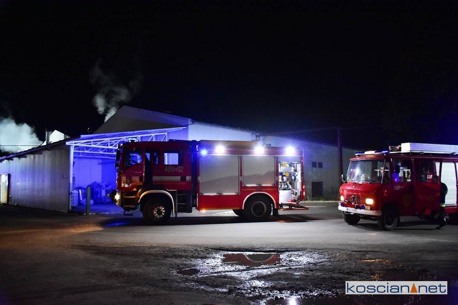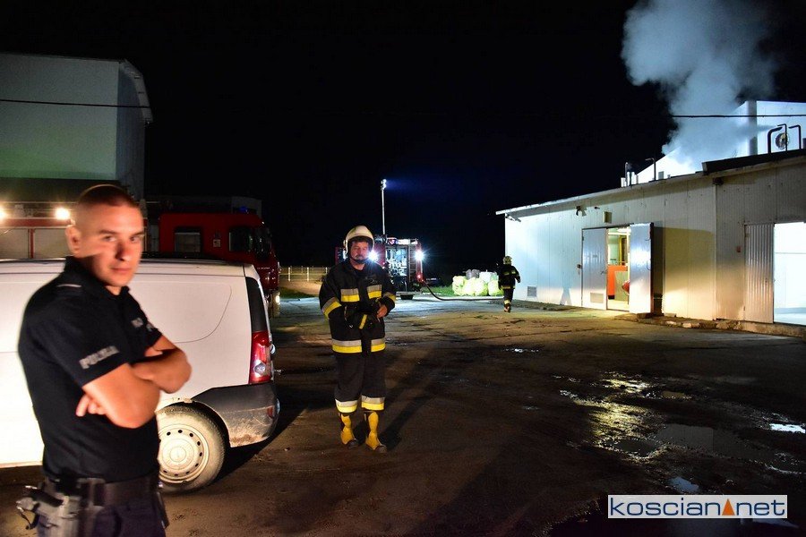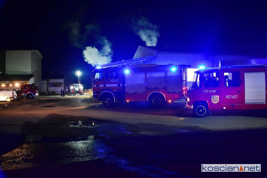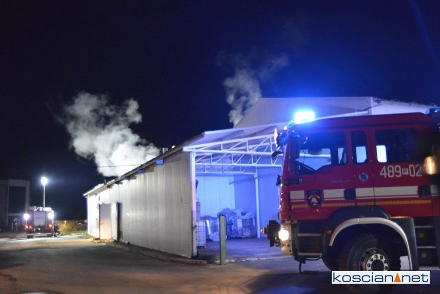 Do pożaru doszło we wtorek, 4 sierpnia, przed północą. Zapaliła się jedna z maszyn na hali produkcyjnej. Interweniowali strażacy z PSP Kościan, OSP Czempiń, OSP Głuchowo i OSP Słonin.
