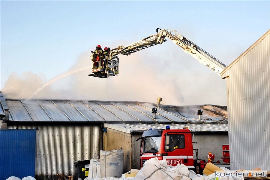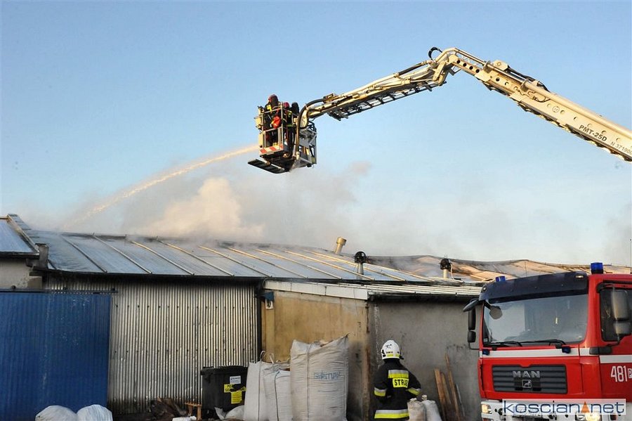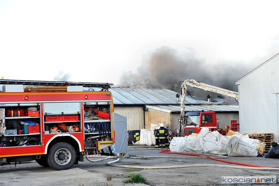 Dwanaście zastępów straży pożarnej walczyło z pożarem stolarni w Czempiniu.