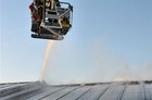 - Na miejscu strażacy zastali kompleks budynków w kształcie litery „L”. Przez znaczną część dachu płomienie strzelały w niebo. Przeprowadzone rozpoznanie wykazało, że pali się w hali produkcyjnej stolarni, głównie dach ale ogień zaczął już trawić zgromadzony surowiec oraz maszyny – opisuje Ziegler.