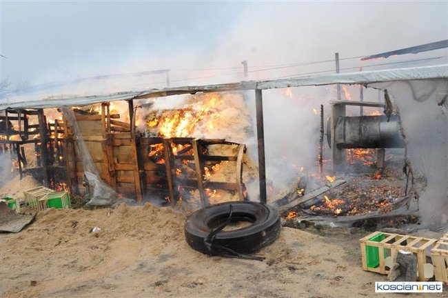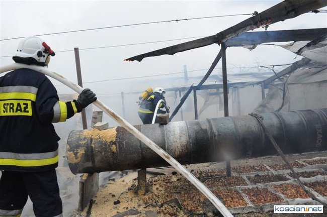 Około godziny 14. straż pożarna przyjęła zgłoszenie o palących się tunelach foliowych, w których przechowywano cebulę, zlokalizowanych pomiędzy Krzywiniem a Nowym Dworem. Do pożaru wysłano zawodowych strażaków z Kościana oraz ochotników z Krzywinia i Jerki. Podczas akcji zabezpieczenie powiatu przejęła OSP Kościan.